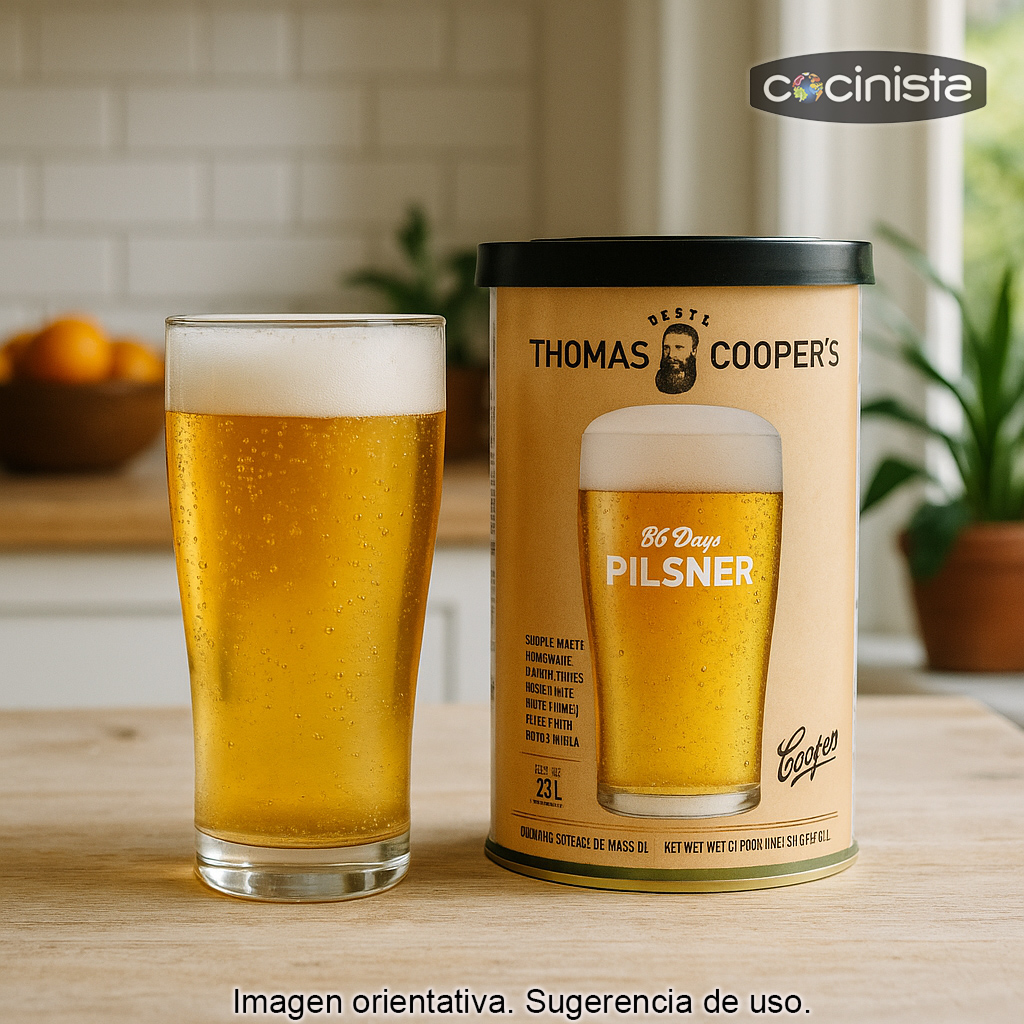 Se trata de un kit de extracto de malta líquido (LME) de 1,7 kg para elaborar aproximadamente 23 litros de cerveza tipo Pilsner en casa. Es una opción excelente tanto si te inicias en el mundo de la cerveza casera como si buscas un kit fiable para obtener una lager/pilsner de estilo limpio y equilibrado.