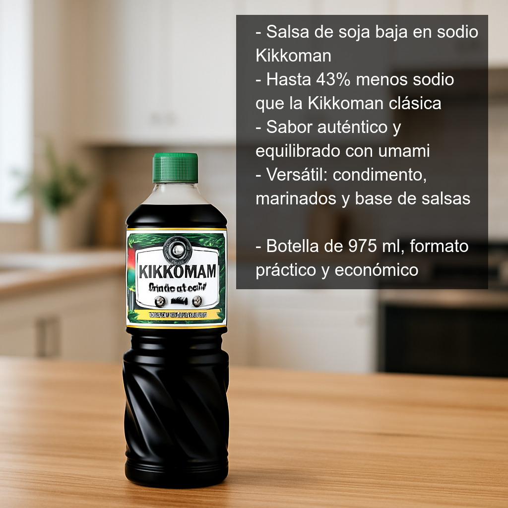 - Menos sodio (hasta un 43% menos que la Kikkoman normal).