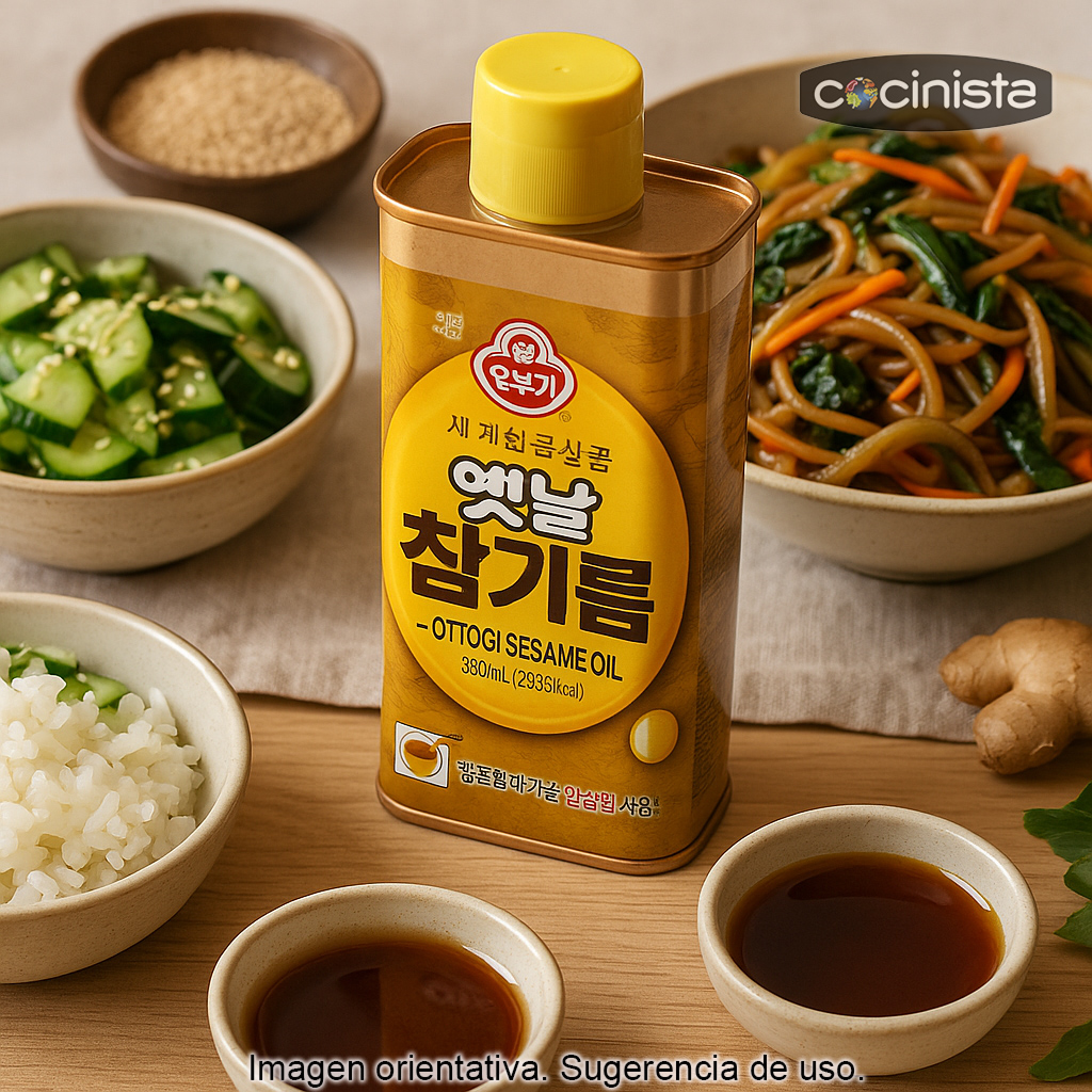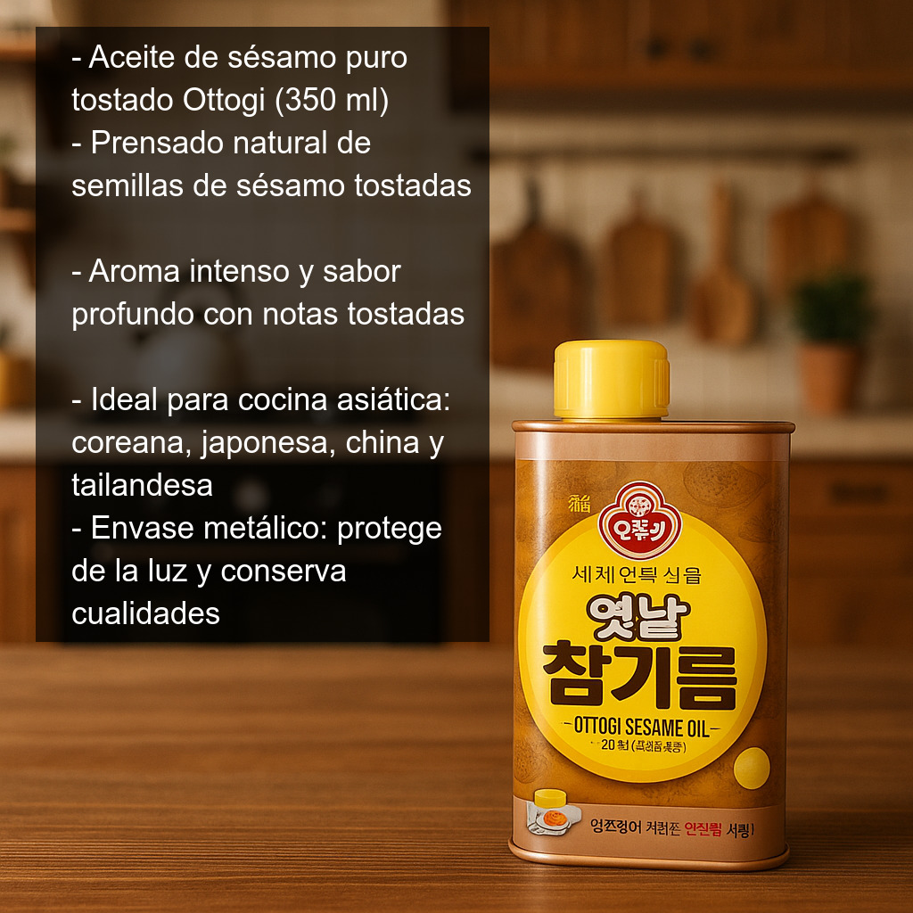 Este aceite de sésamo tostado es especialmente apreciado en la cocina asiática (coreana, japonesa, china y tailandesa) por su capacidad para realzar el sabor de platos sencillos y dar un acabado aromático inconfundible.