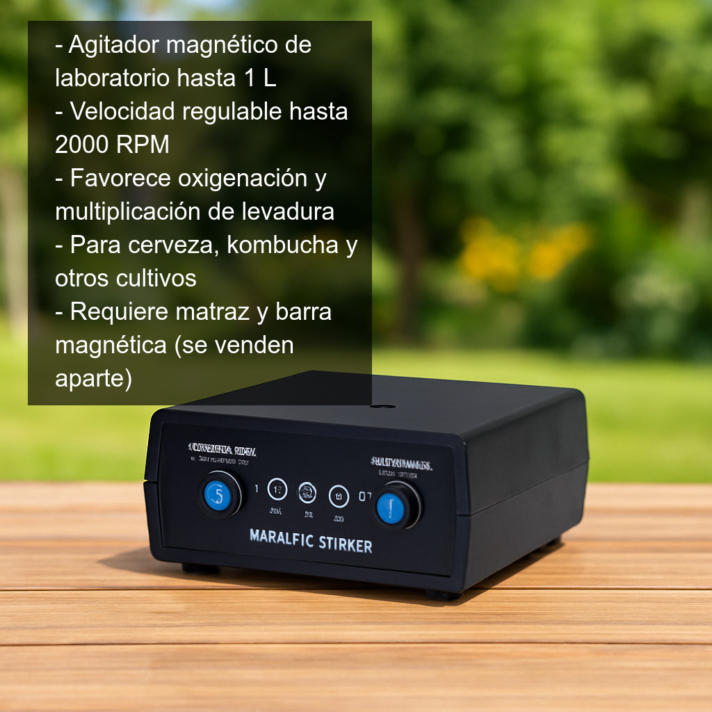 Gracias a su regulador de velocidad, puedes ajustar la agitación según el volumen y la densidad del mosto, alcanzando hasta 2000 RPM. Es una herramienta muy utilizada tanto en laboratorio como en elaboración casera de cerveza, kombucha u otros cultivos, ya que permite mantener una mezcla homogénea sin necesidad de agitar manualmente.
