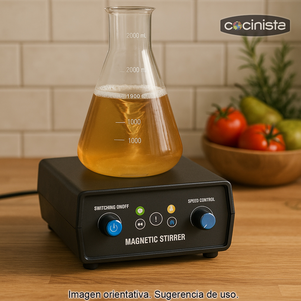 El agitador magnético para matraces de hasta 2 litros es una herramienta de laboratorio imprescindible para quienes buscan mezclas homogéneas y una oxigenación eficiente en pequeños volúmenes. Es especialmente útil en elaboración de cerveza para preparar starters de levadura consistentes, mejorando la multiplicación celular y ayudando a conseguir fermentaciones más sanas y predecibles.