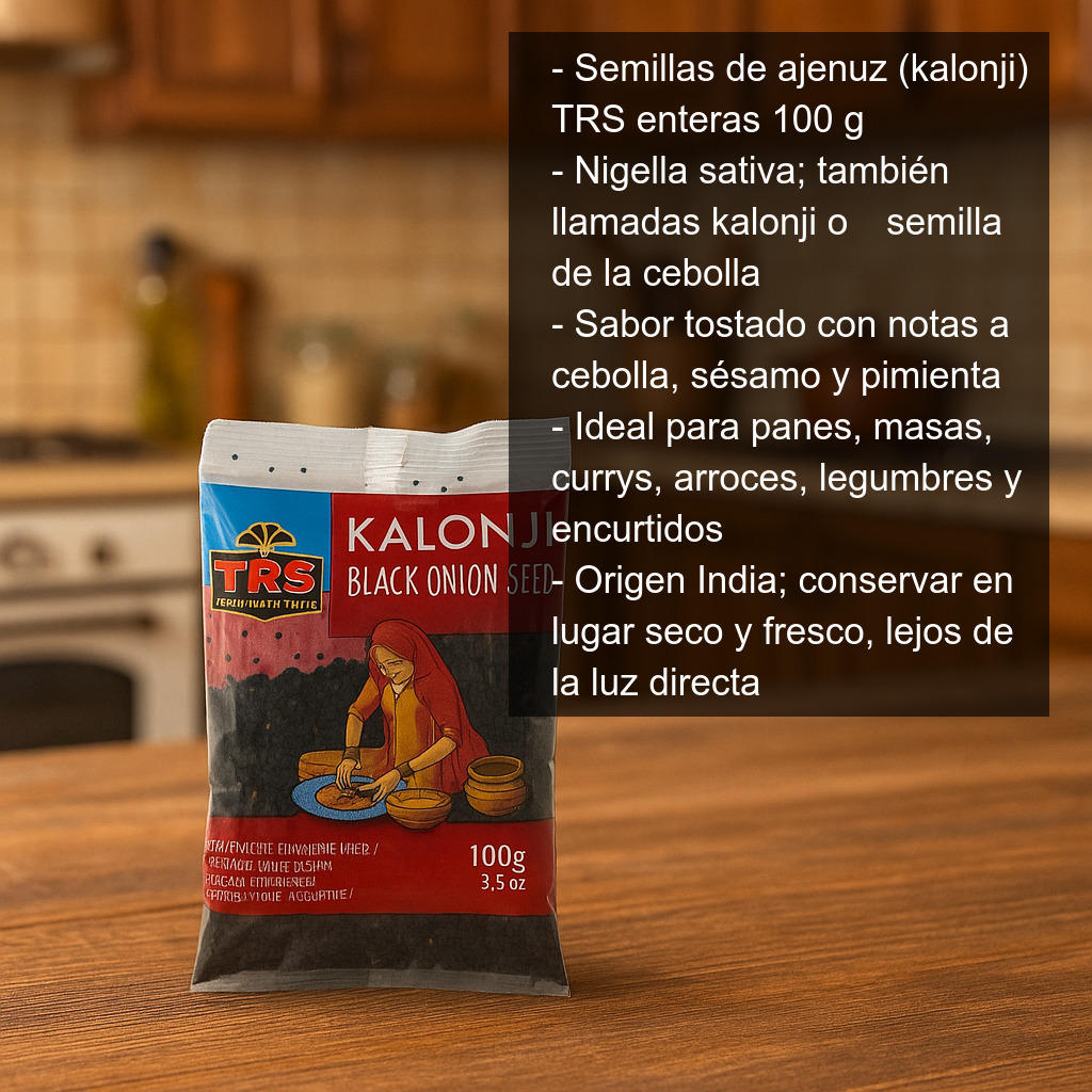Las semillas de ajenuz (Nigella sativa), también conocidas como kalonji o “semilla de la cebolla”, son una especia imprescindible en la cocina india y de Oriente Medio. Este formato en bolsa de 100 g es ideal para tener siempre a mano un toque aromático diferente: un sabor ligeramente tostado, con matices que recuerdan a la cebolla, el sésamo y la pimienta, perfecto para dar personalidad a panes, masas y platos especiados.