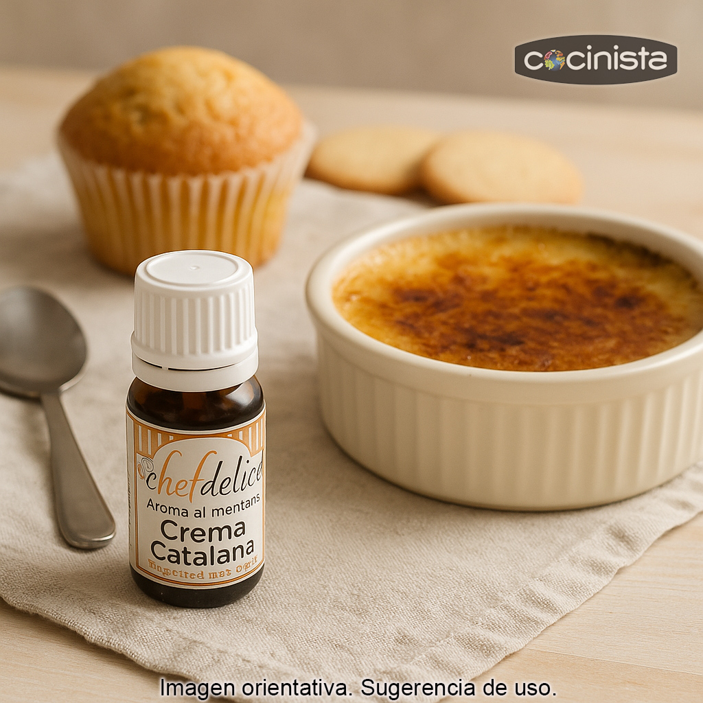 Aporta a tus recetas el inconfundible sabor tradicional de la crema catalana con este aroma alimentario superconcentrado en formato 10 ml. Unas pocas gotas bastan para perfumar masas y elaboraciones con notas dulces y cremosas, ideales para repostería y postres caseros o profesionales.