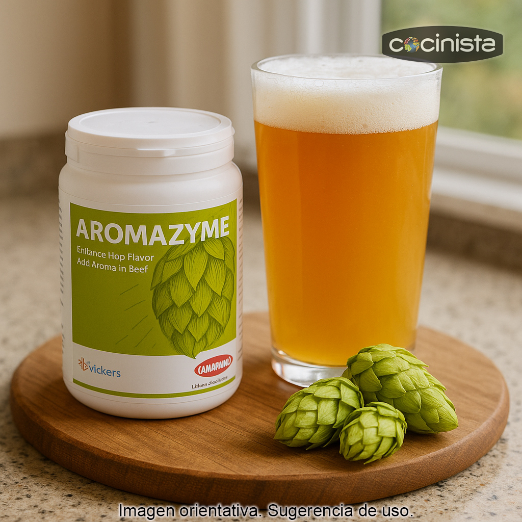 Lallemand Aromazyme (100 g) es un preparado enzimático de calidad alimentaria diseñado para potenciar el aroma y el sabor del lúpulo en cerveza, aumentando la complejidad aromática y mejorando la percepción en boca. Es una herramienta especialmente útil en estilos lupulados (IPA, Pale Ale, NEIPA, Session IPA), pero también aporta valor en cervezas donde se busca más expresión aromática con un uso de lúpulo más eficiente.