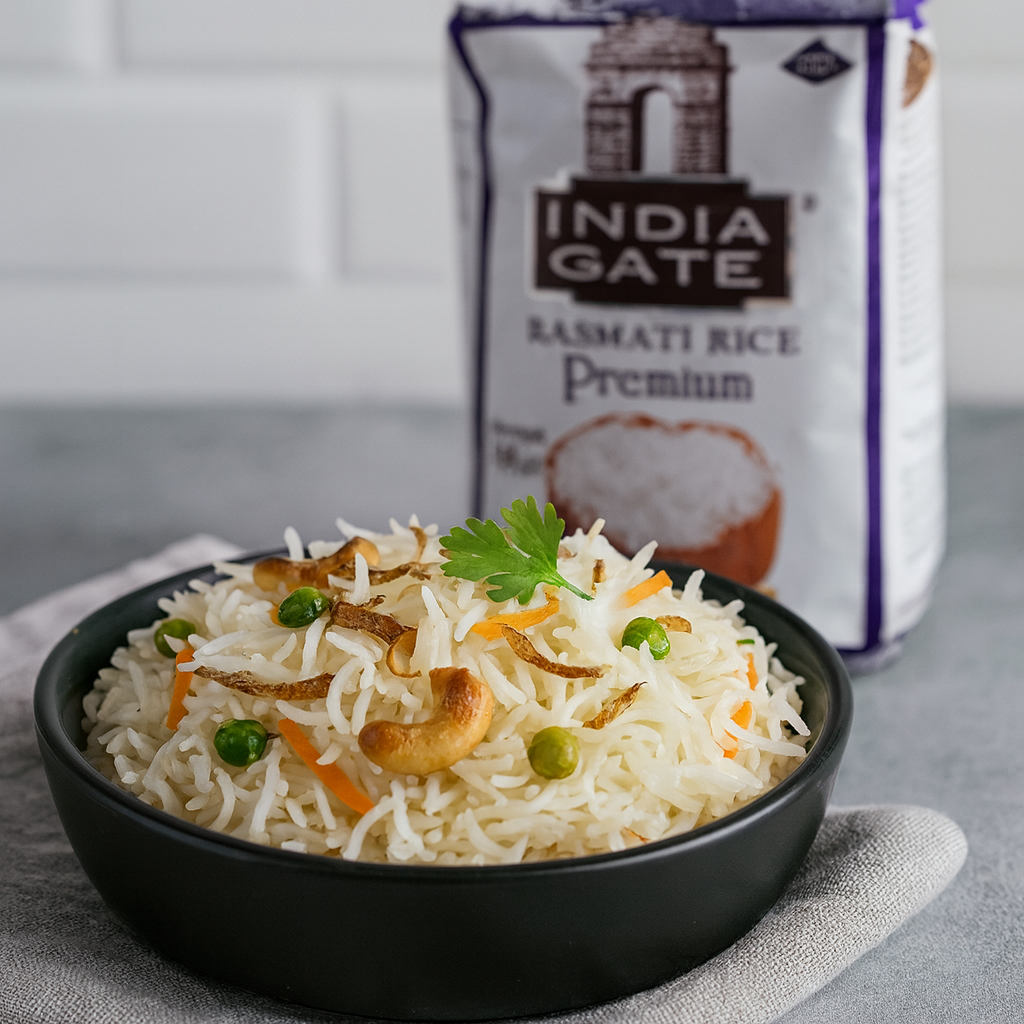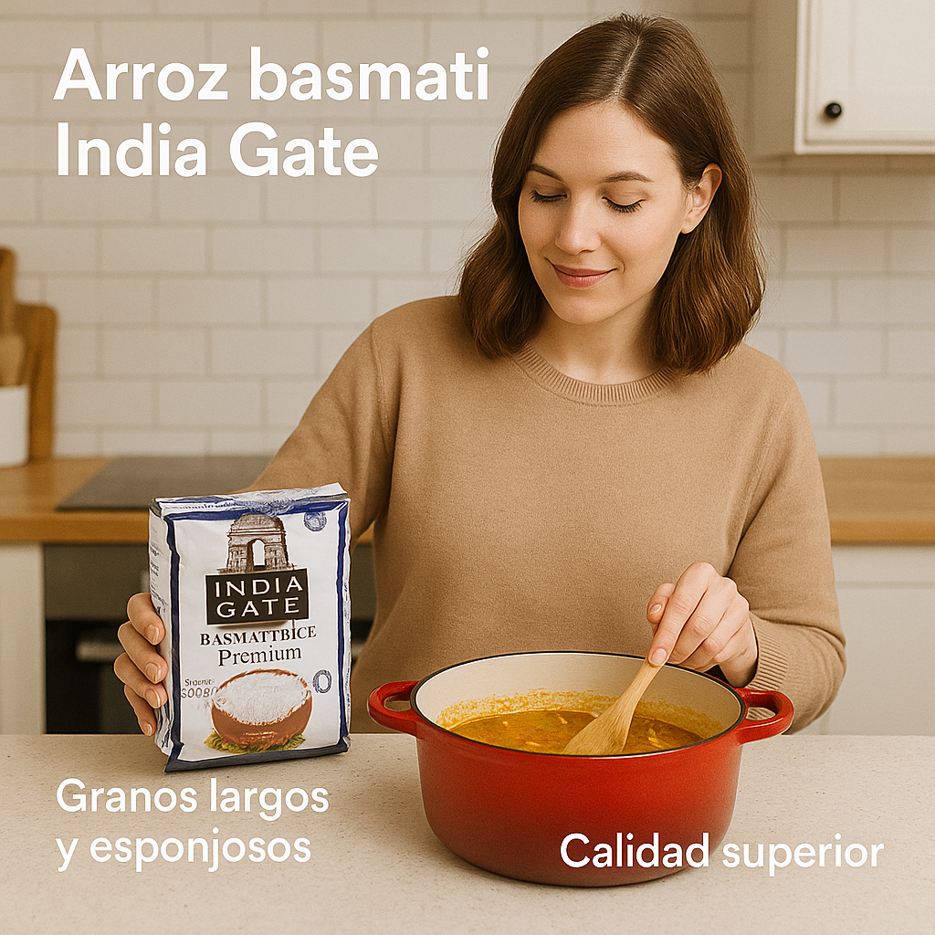 El arroz basmati de India Gate, es un arroz que se origina en el corazón de los arroces Basmati que crecen en la India, en la región de Terai del Himalaya noroccidental. Su cosecha es de la más alta calidad, y eso se nota en la larga duración, la finura y la textura suave de sus granos, estos una vez cocidos no se romperán ni se pegarán. Su aroma es delicado y el sabor es simplemente irresistible.