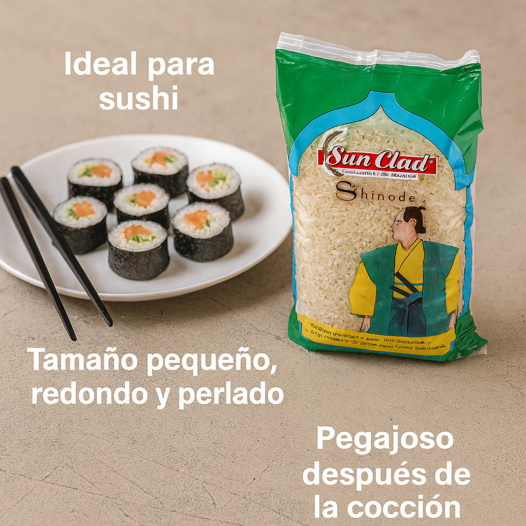 Arroz tipo japónica para hacer sushi. Sus cualidades "pegajosas" y su sabor y textura lo hacen perfecto para elaborar el rollitos o bolitas de sushi.