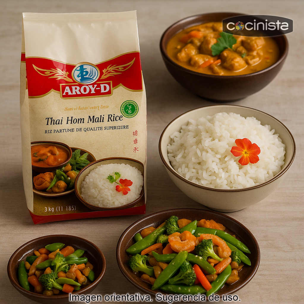 El arroz jazmín es un emblema de la cocina tailandesa y una excelente elección para recetas asiáticas y de fusión. Es especialmente recomendable para: