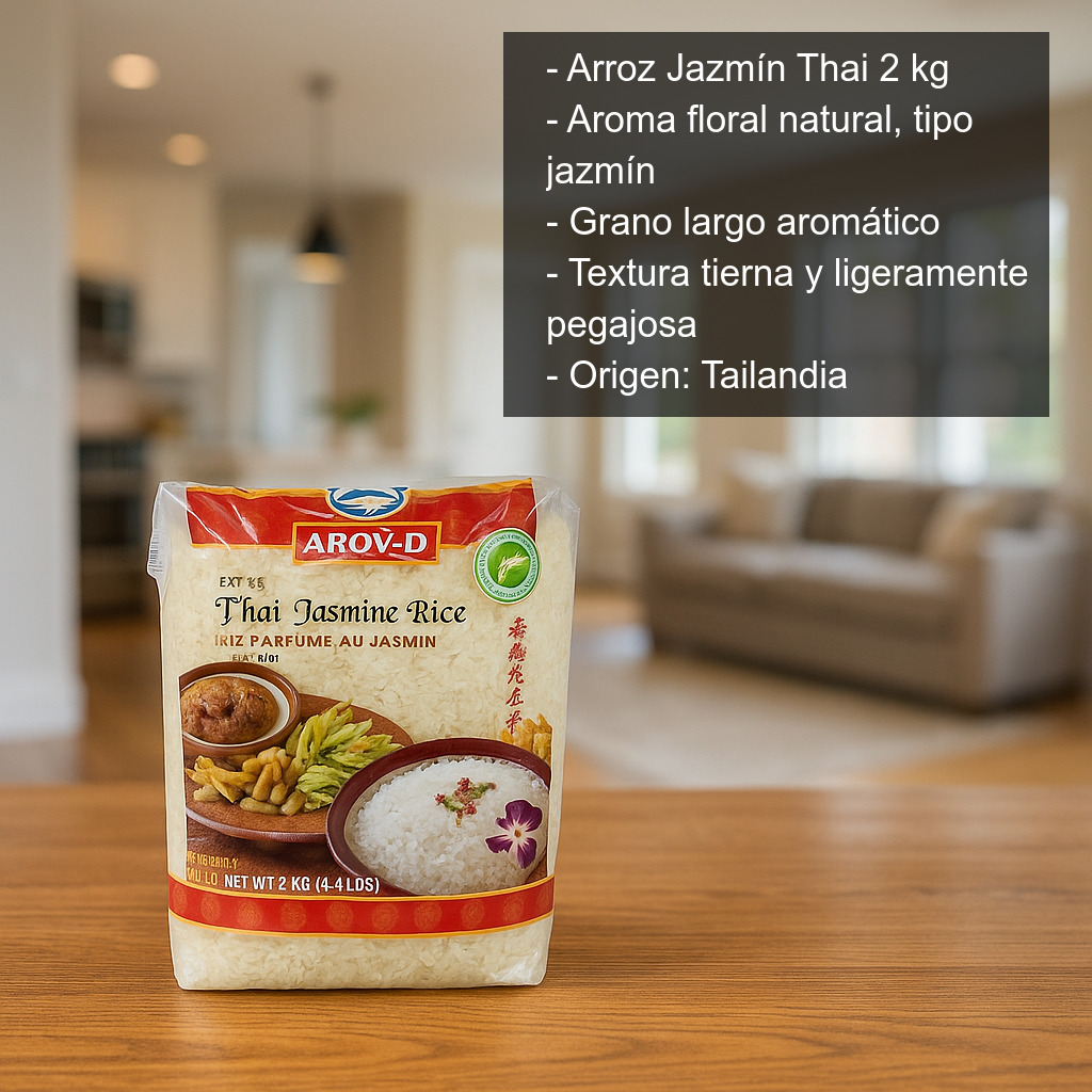 - Tipo: arroz jazmín (jasmine), grano largo aromático