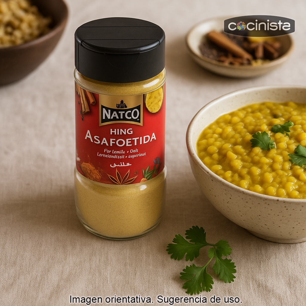- Mejor al inicio de la receta: añade la asafétida al aceite o ghee caliente durante unos segundos para que se “abra” el aroma y se suavice.