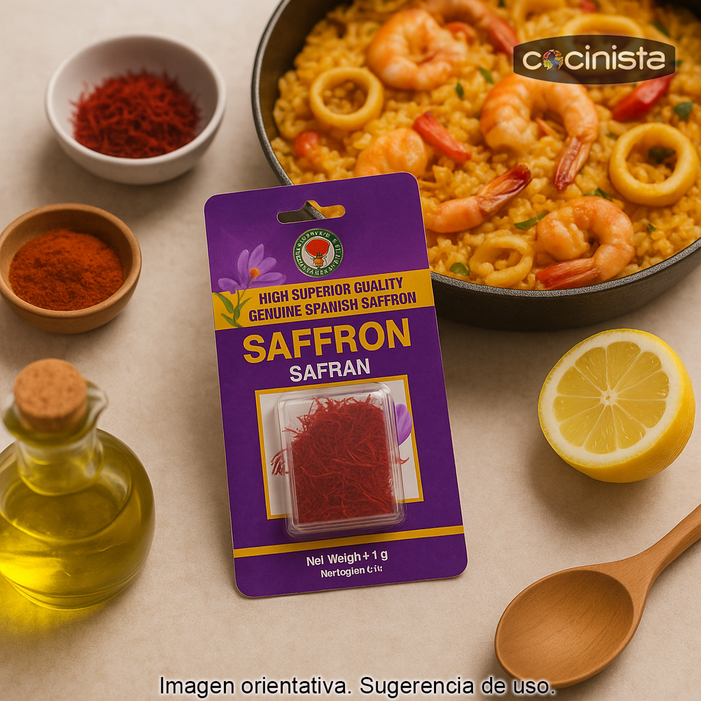 Se presenta en la típica caja de azafrán, con un contenido total de 1 gramo, perfecto para tener siempre a mano un ingrediente de alta calidad en la despensa.
