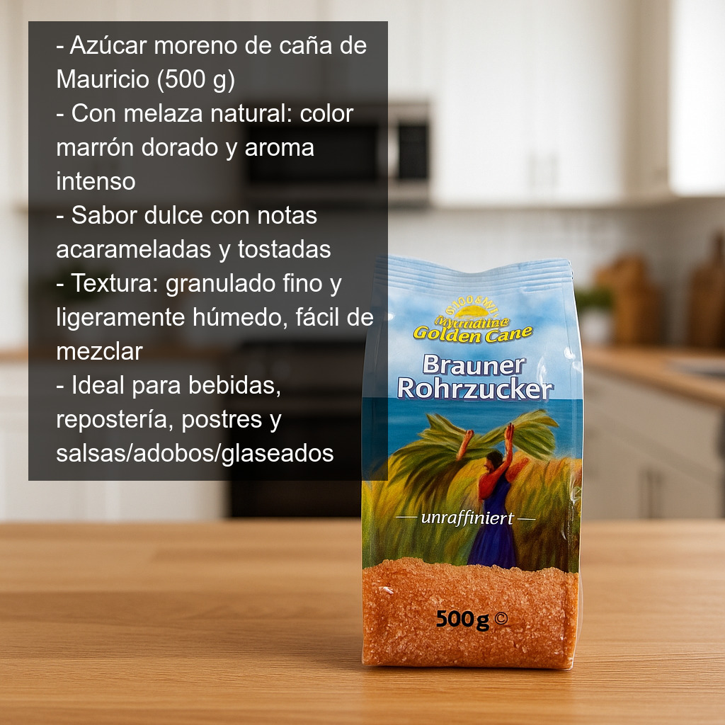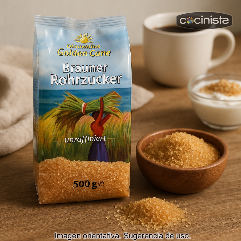 - Con melaza natural, que aporta color, aroma y un dulzor más redondo.