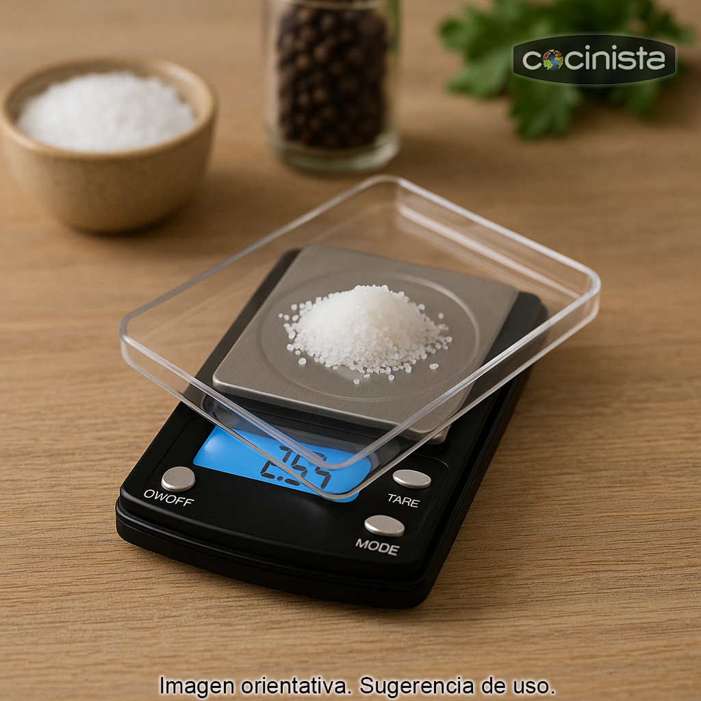 Gracias a su diseño práctico, esta báscula digital de alta precisión es perfecta para pesar pequeñas cantidades con total control: desde ingredientes y aditivos en cocina (sal, especias, gelificantes, estabilizantes, levaduras, etc.) hasta usos de laboratorio, manualidades o coleccionismo. Su lectura clara y su funcionamiento sencillo la convierten en una opción muy cómoda tanto para uso doméstico como profesional.