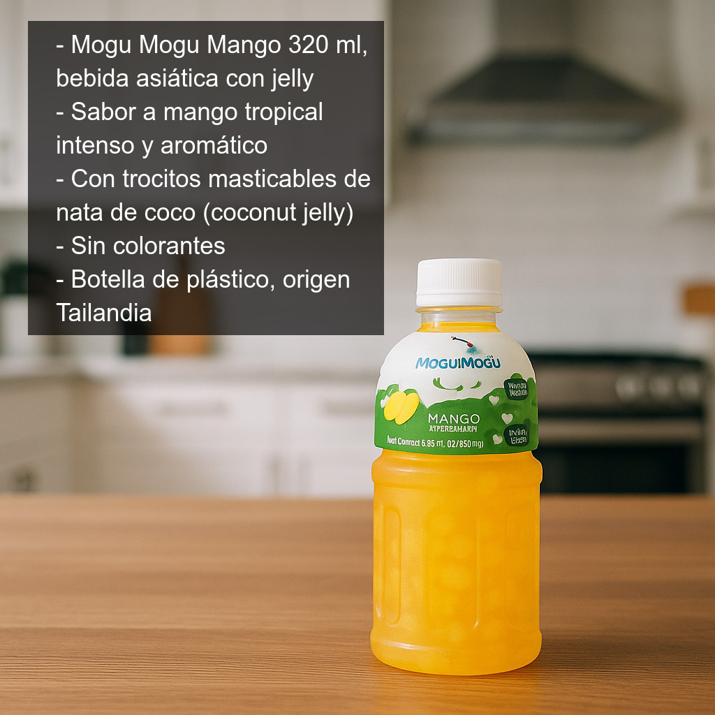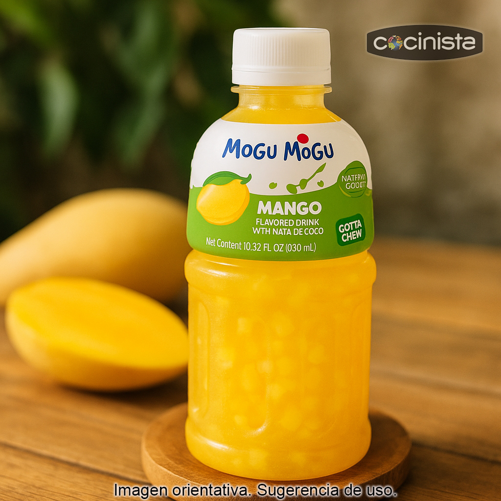 La bebida Mogu Mogu sabor a mango (320 ml) es una de las bebidas asiáticas más populares por una razón muy simple: es refrescante, deliciosa y, sobre todo, divertida. Combina el intenso sabor tropical del mango con trocitos masticables de nata de coco (coconut jelly), creando una experiencia a medio camino entre bebida y snack.
