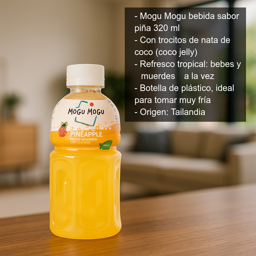 ¿Cuándo tomar Mogu Mogu de piña? Es ideal para disfrutar bien fría en cualquier momento del día: en casa, en la oficina, después de entrenar, de picnic o como acompañamiento de tus comidas. También es una gran elección si te gustan las bebidas japonesas y tailandesas, si quieres probar sabores nuevos o si buscas una alternativa diferente a los refrescos convencionales.
