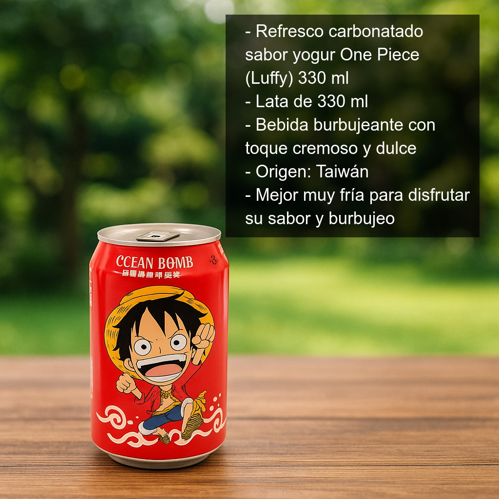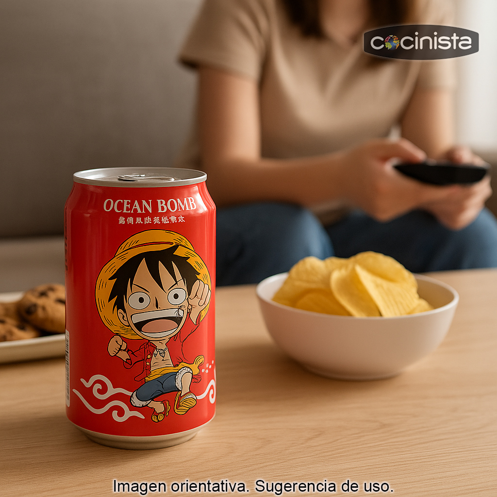 Además, esta bebida es ideal para fans del anime y coleccionistas: se presenta en una lata con una divertida ilustración del famoso Monkey D. Luffy, protagonista de One Piece. Un detalle perfecto para regalar, decorar tu estantería friki o añadir a tu colección de latas y productos temáticos.