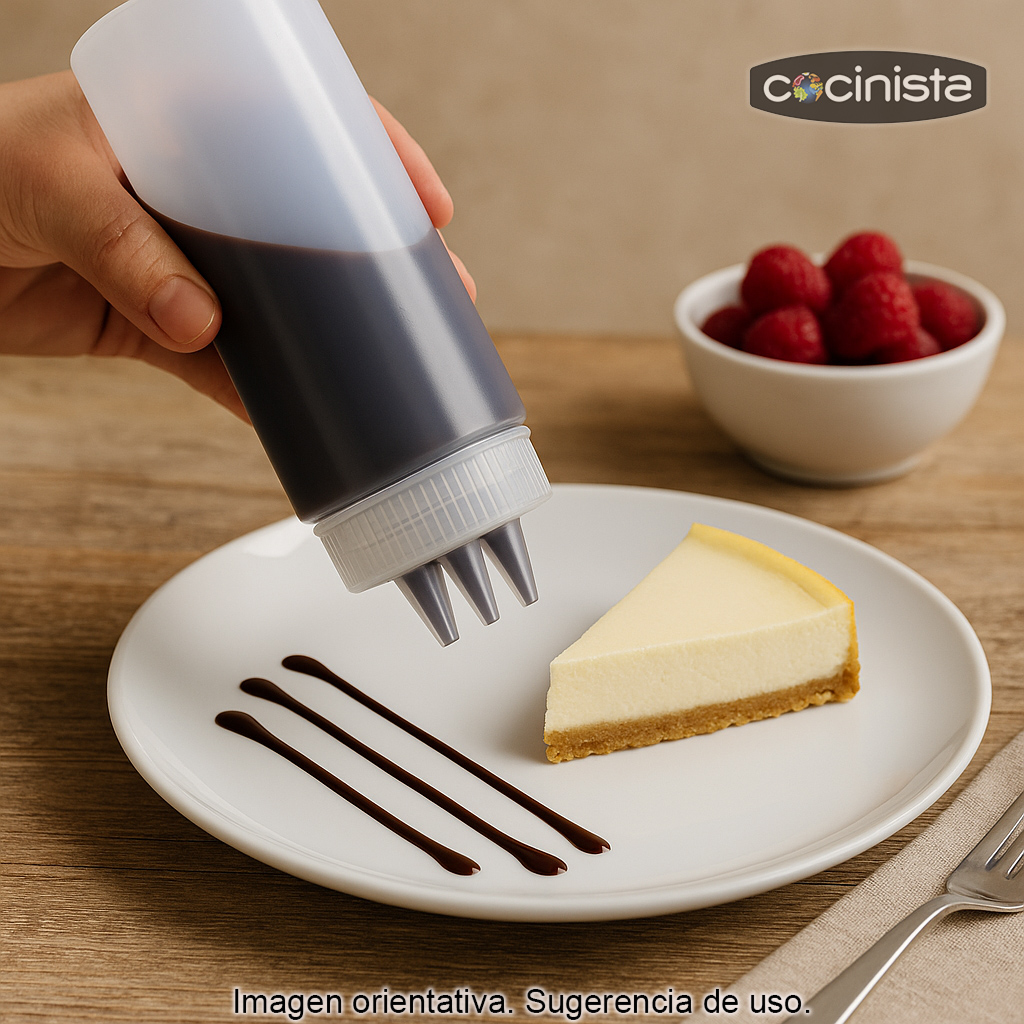 - Ideal para decoración y emplatado: salsas, cremas, coulis y chocolate.