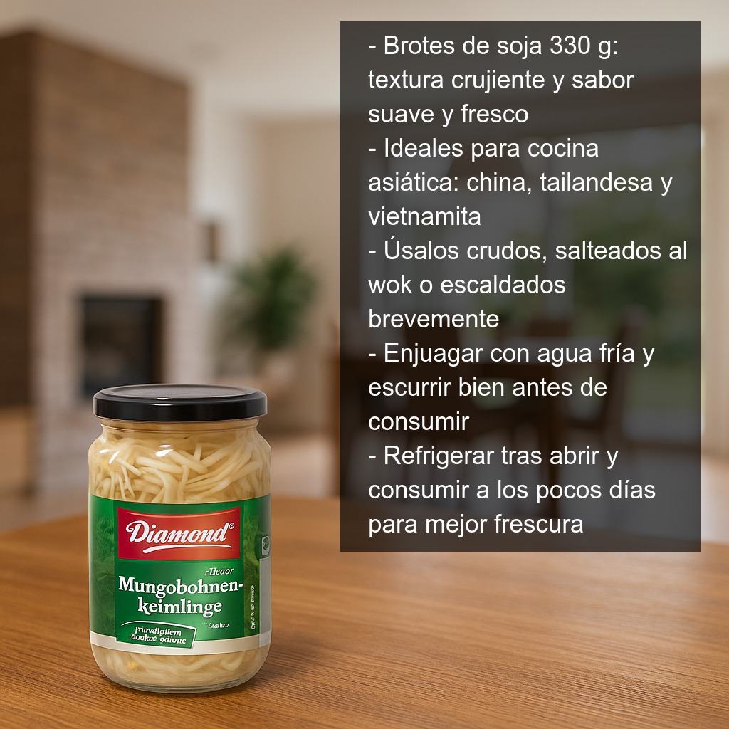 Los brotes de soja (también conocidos como germinados de soja) son un ingrediente imprescindible en la cocina asiática por su textura crujiente y su sabor suave y fresco. Estos brotes aportan ligereza a los platos y combinan especialmente bien con salsas, salteados y recetas con wok. Son una opción muy versátil para tener siempre a mano si te gusta preparar recetas chinas, tailandesas, vietnamitas o simplemente añadir un toque crujiente a tus ensaladas.