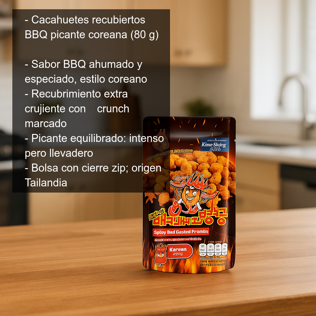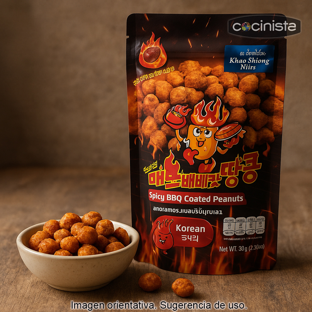 Los Cacahuetes recubiertos sabor a barbacoa picante coreana destacan por su combinación de crujiente, aroma ahumado y picante en un formato cómodo. Un snack internacional con carácter, perfecto para quienes disfrutan descubriendo sabores nuevos.