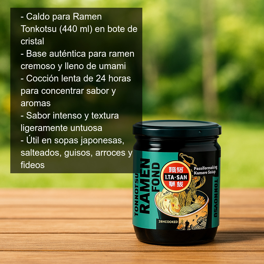 - Tipo: caldo para ramen estilo tonkotsu.