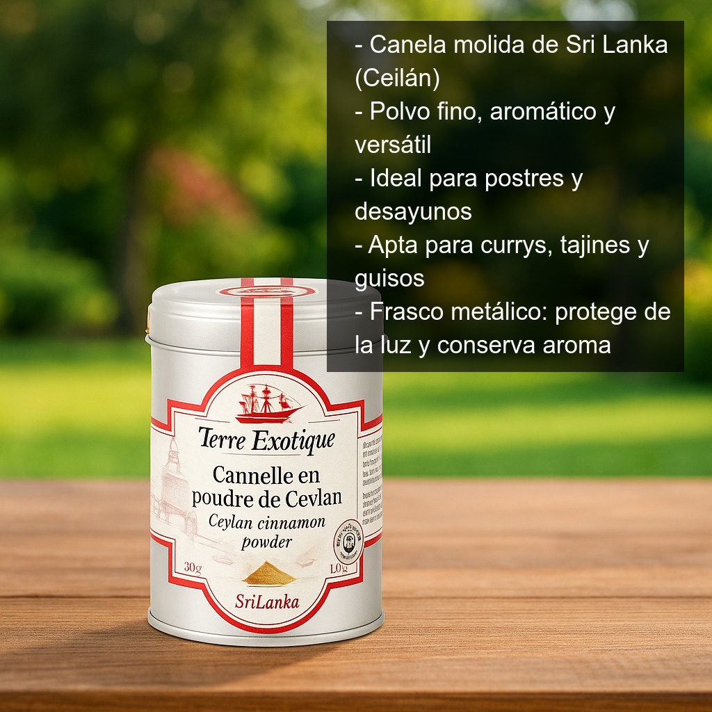 Esta canela es ideal para aportar un toque especiado y elegante a postres como bizcochos, galletas, arroz con leche, natillas, compotas, manzanas asadas o chocolate caliente. También funciona de maravilla en desayunos (yogur, avena, granola, tortitas) y en bebidas como café, té chai o batidos.