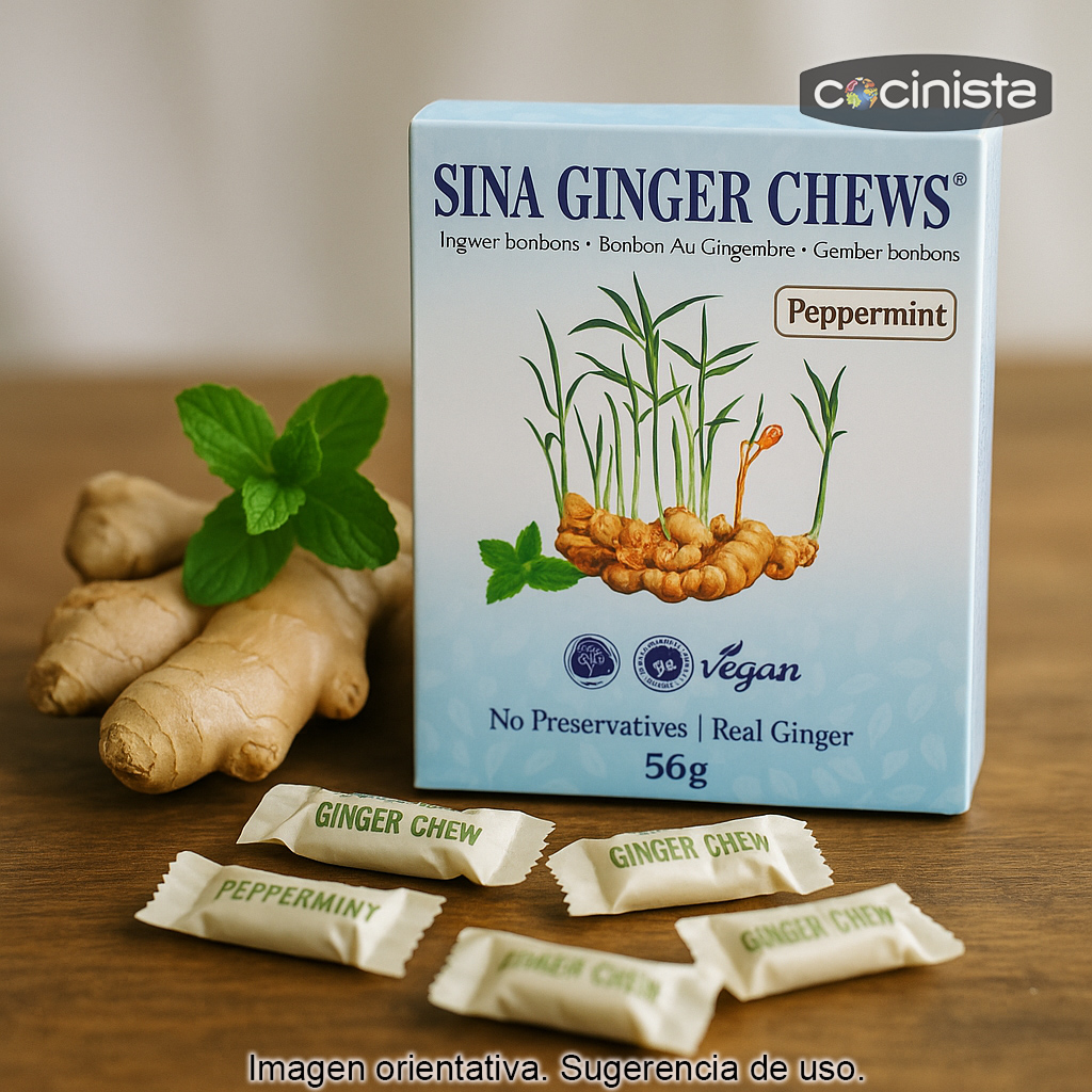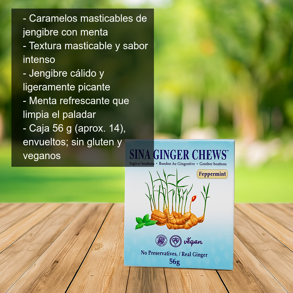 Disfruta de un equilibrio perfecto entre sabor y frescor con estos caramelos masticables de jengibre con menta. Una opción ideal para quienes buscan un dulce diferente: aromático, ligeramente picante gracias al jengibre y con un toque refrescante de menta que limpia el paladar.