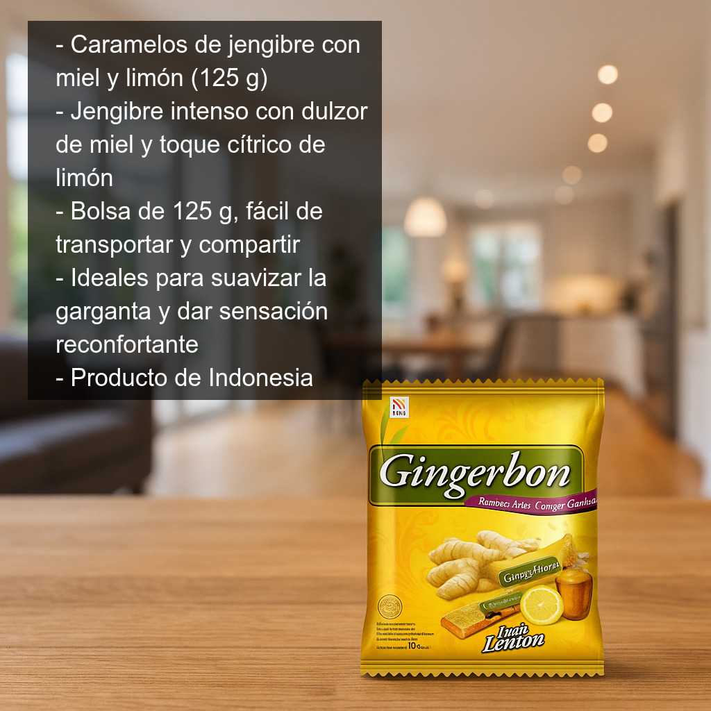 Su sabor es ideal para quienes buscan caramelos de jengibre con un perfil más redondo y agradable: primero aparece el punto cálido del jengibre, después la miel suaviza el conjunto y, al final, el limón aporta una sensación refrescante. Son una opción estupenda para suavizar la garganta y disfrutar de un caramelo con carácter en cualquier momento del día.