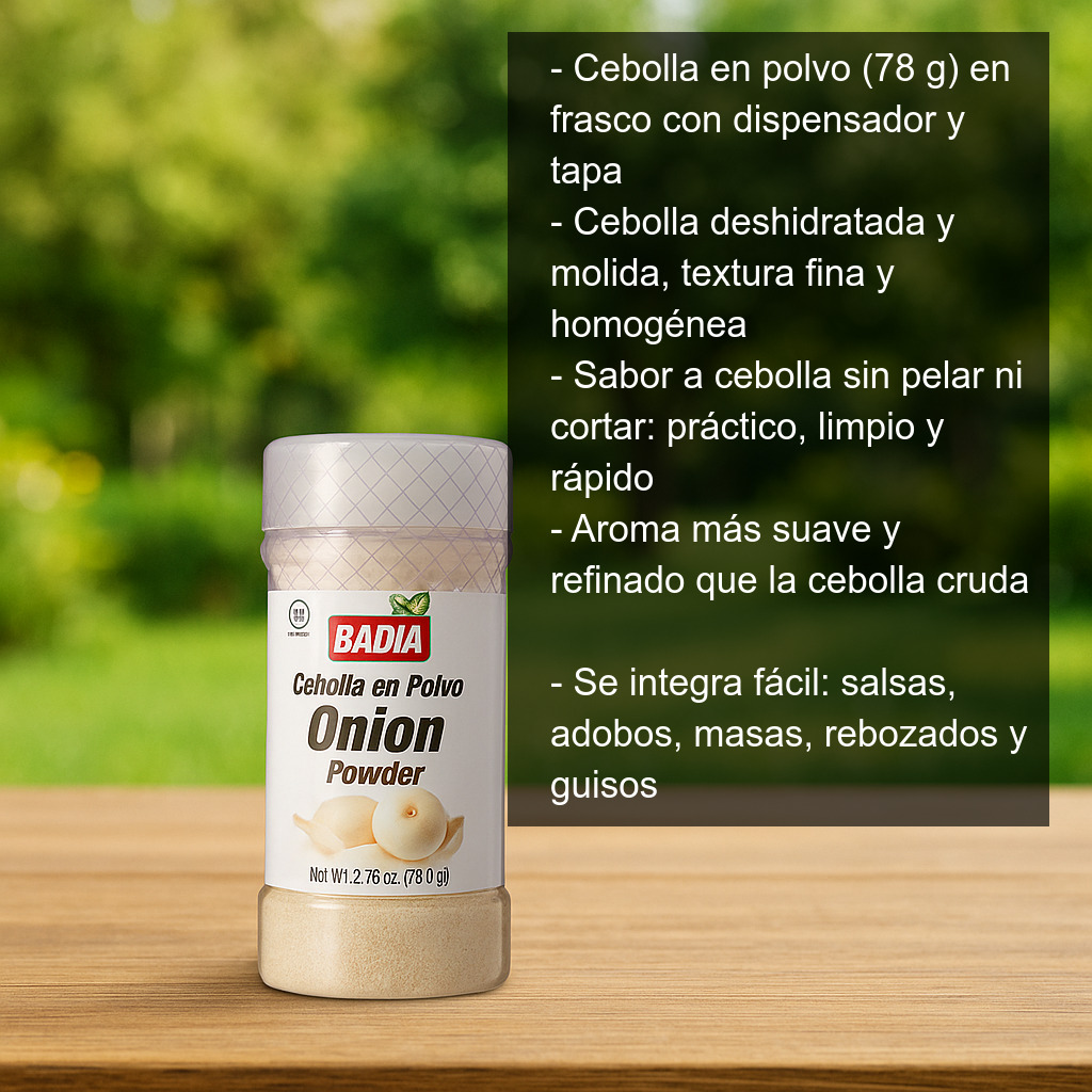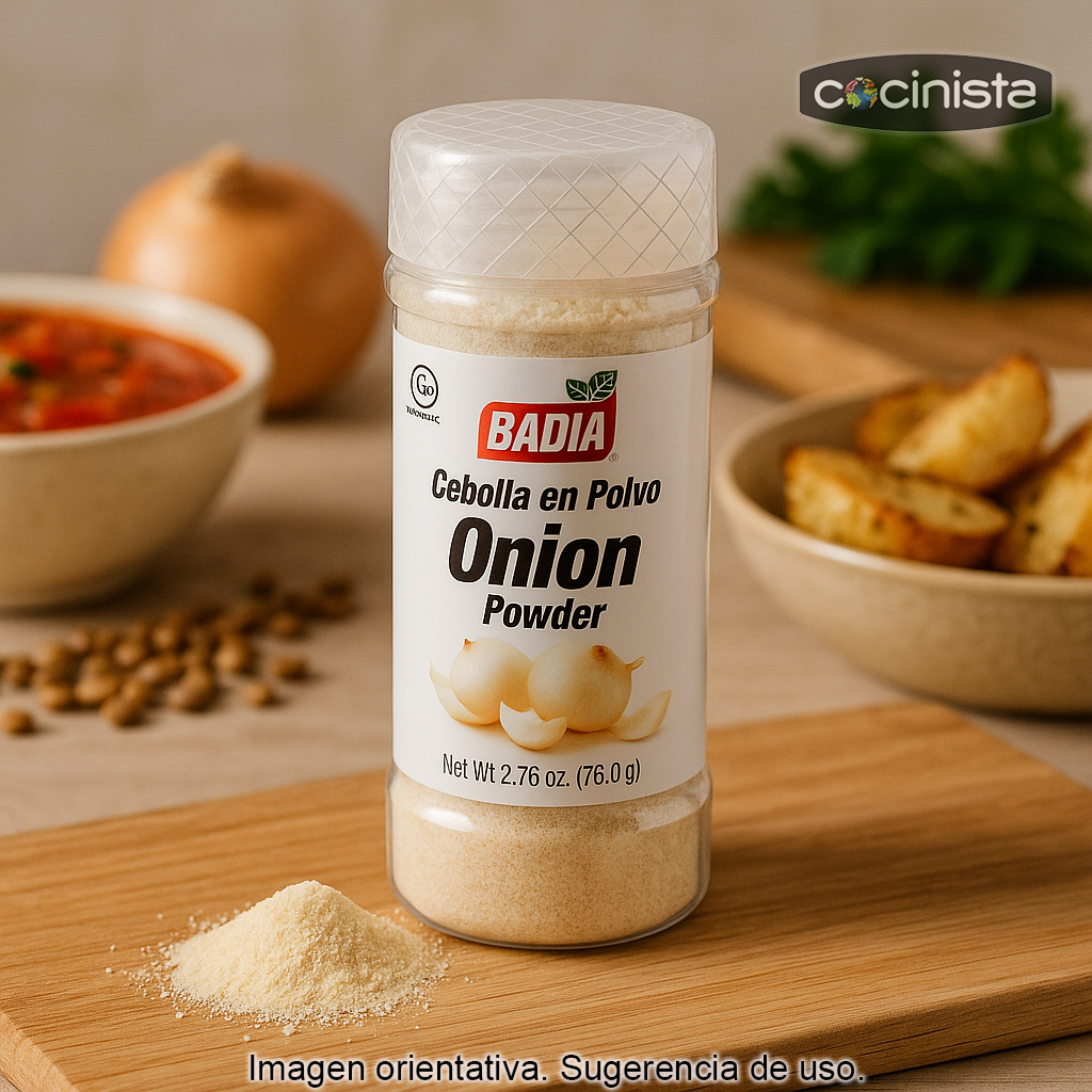 Este formato es especialmente útil para cocina diaria y para recetas en las que quieres un sabor a cebolla uniforme: se disuelve bien en salsas, se mezcla sin grumos en adobos y se reparte de manera equilibrada en masas y rebozados.