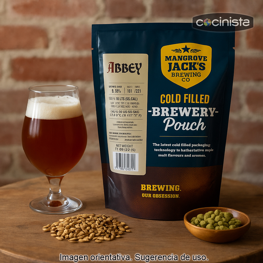 El kit de cerveza de Abadía Mangrove Jack’s Traditional Series (10 litros) es una excelente opción para elaborar en casa una auténtica cerveza belga estilo Abadía, con un perfil ámbar, de sabor intenso y graduación elevada. Ideal para quienes buscan una cerveza con carácter, cuerpo y matices maltosos, perfecta para disfrutar en ocasiones especiales o para acompañar platos contundentes.
