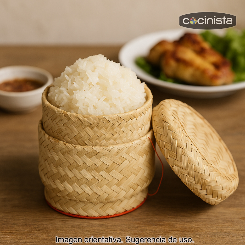 - Uso: servir arroz glutinoso / sticky rice y mantener el calor.