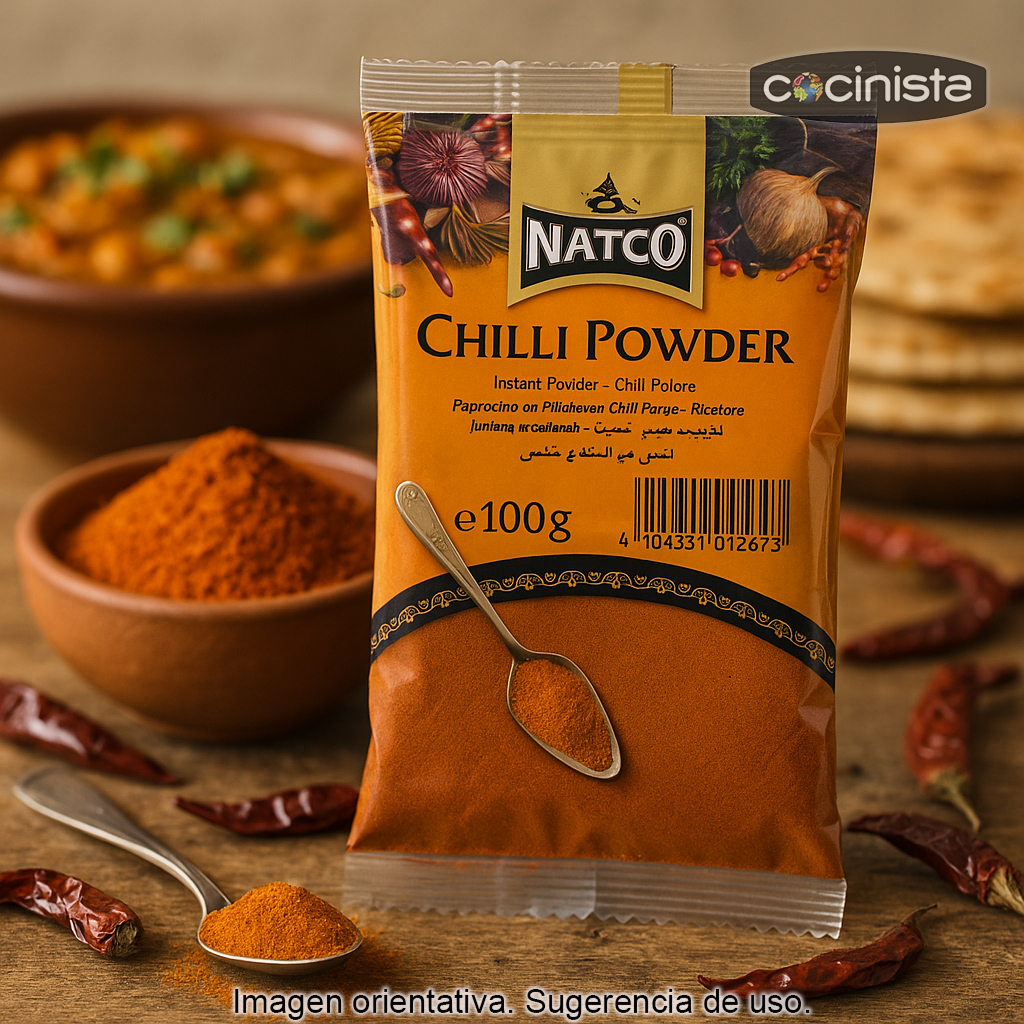 El chile en polvo (también conocido como pimienta de cayena) es un ingrediente imprescindible para quienes buscan aportar picante intenso, color rojo vivo y un toque aromático profundo a sus recetas. Este chile está elaborado a partir de las pieles secas tostadas de chiles rojos, lo que concentra su sabor y potencia su característico calor. Se utiliza de forma generosa en una gran variedad de platos de la cocina india y en muchas preparaciones internacionales donde se desea un picor limpio y directo.