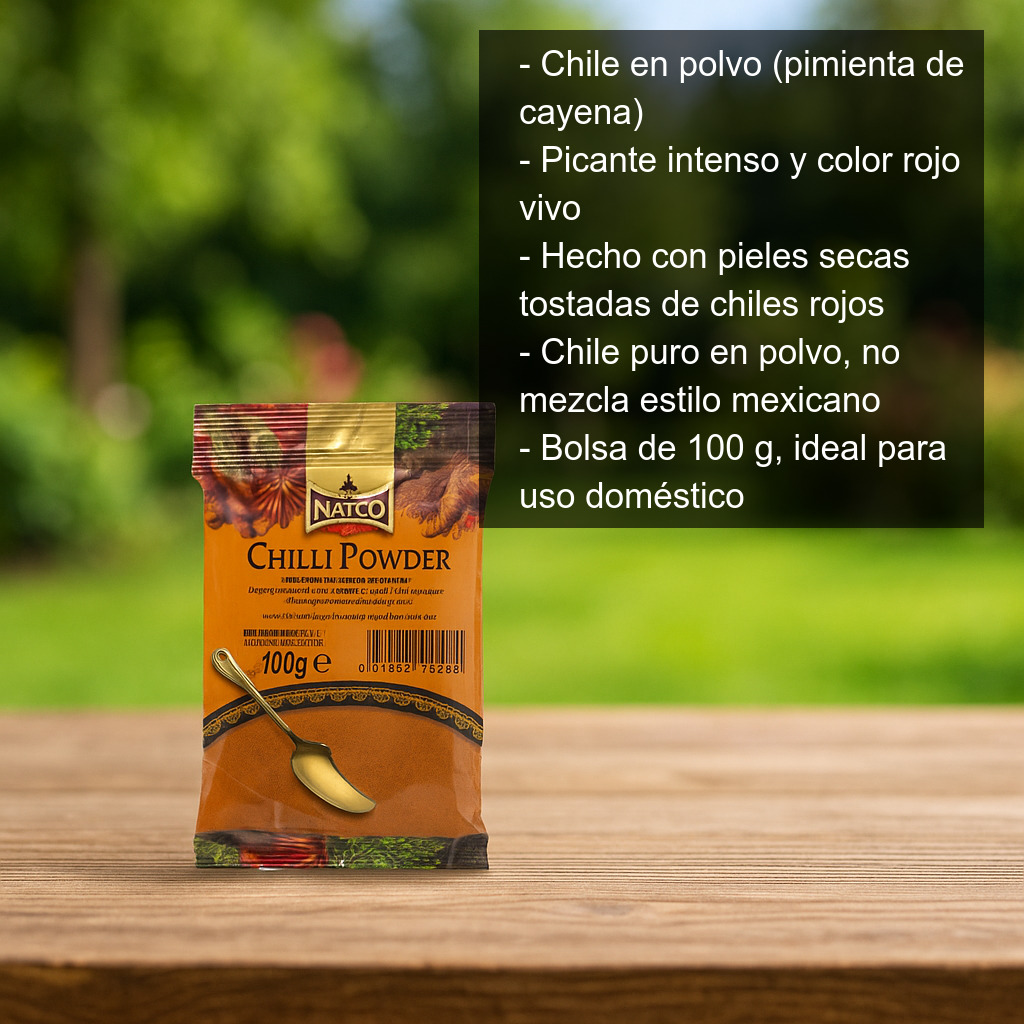 Este producto se conoce también como pimienta de cayena para diferenciarlo del chile en polvo estilo mexicano, que suele ser una mezcla de especias e incluye ingredientes como comino, ajo y orégano. Aquí encontrarás un chile puro en polvo, ideal para controlar el nivel de picante y adaptar la receta a tu gusto.