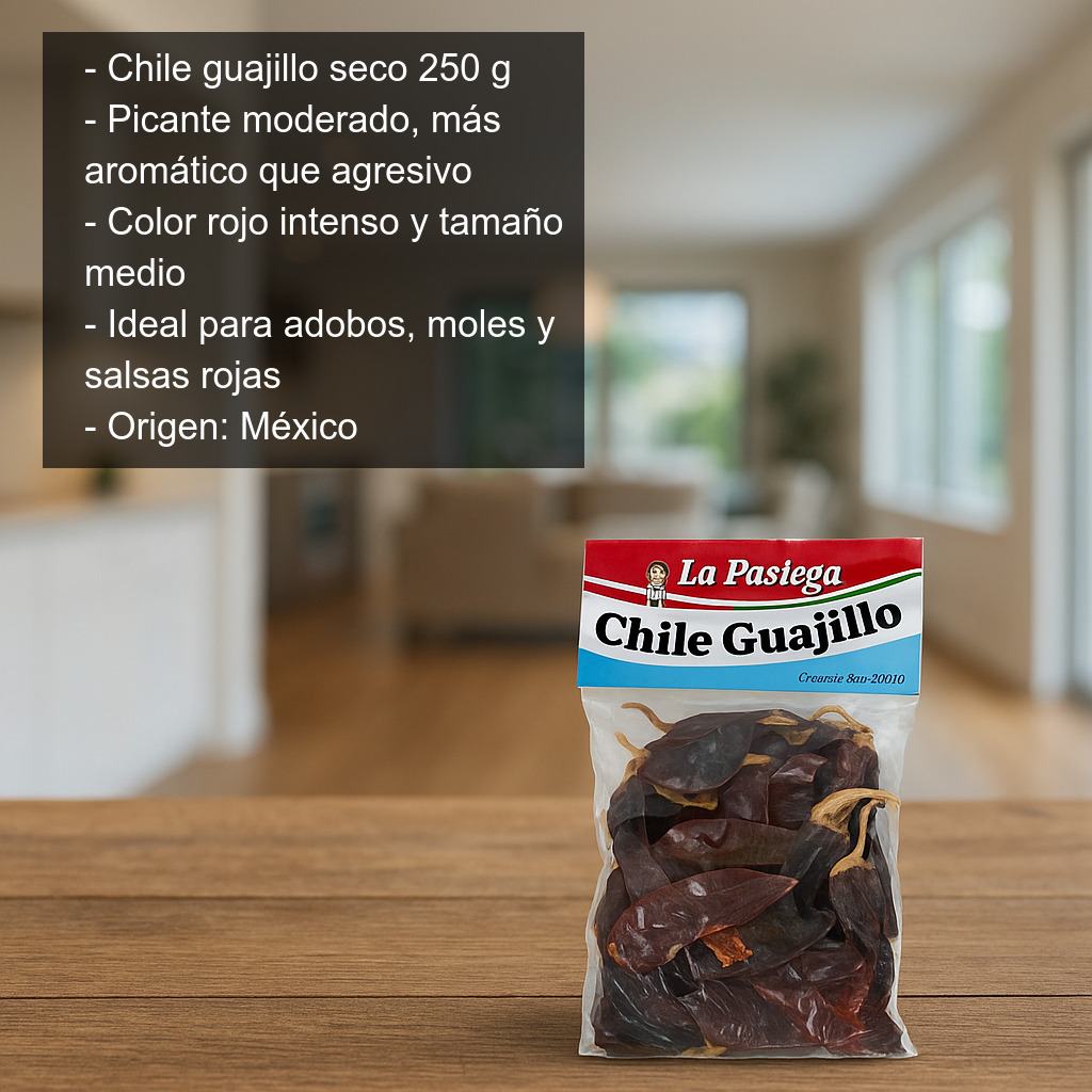 Guarda el chile guajillo en un lugar fresco, seco y protegido de la luz. Una vez abierta la bolsa, se recomienda conservarlo en un recipiente hermético para mantener mejor su aroma y textura.