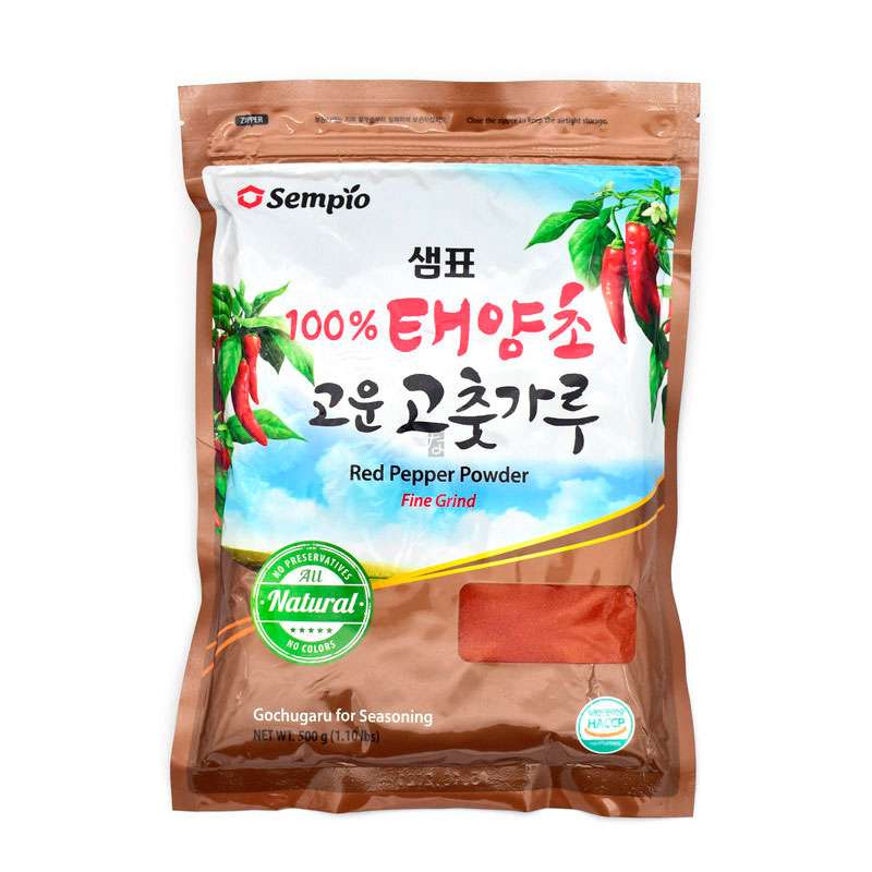 Chile del tipo Gochugaru coreano en polvo o molidos. El Gochugaru es el chile más usado en la cocina de Corea del Sur y se emplea para platos tan emblemáticos como el Kimchi, el Gochujang y muchos otros.
