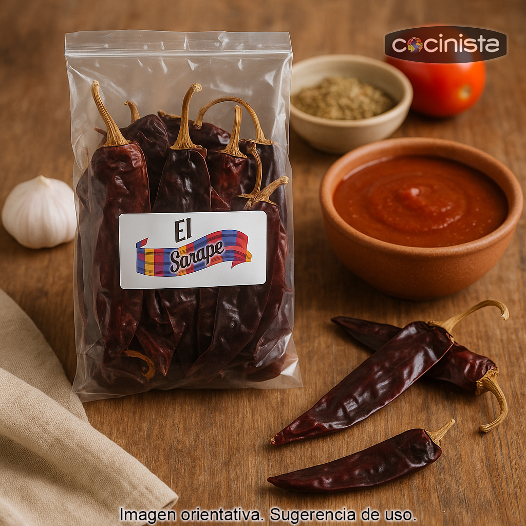 - Salsas y moles: ideal para salsas rojas, salsas para tacos, enchiladas, chilaquiles o moles suaves, aportando color y profundidad.