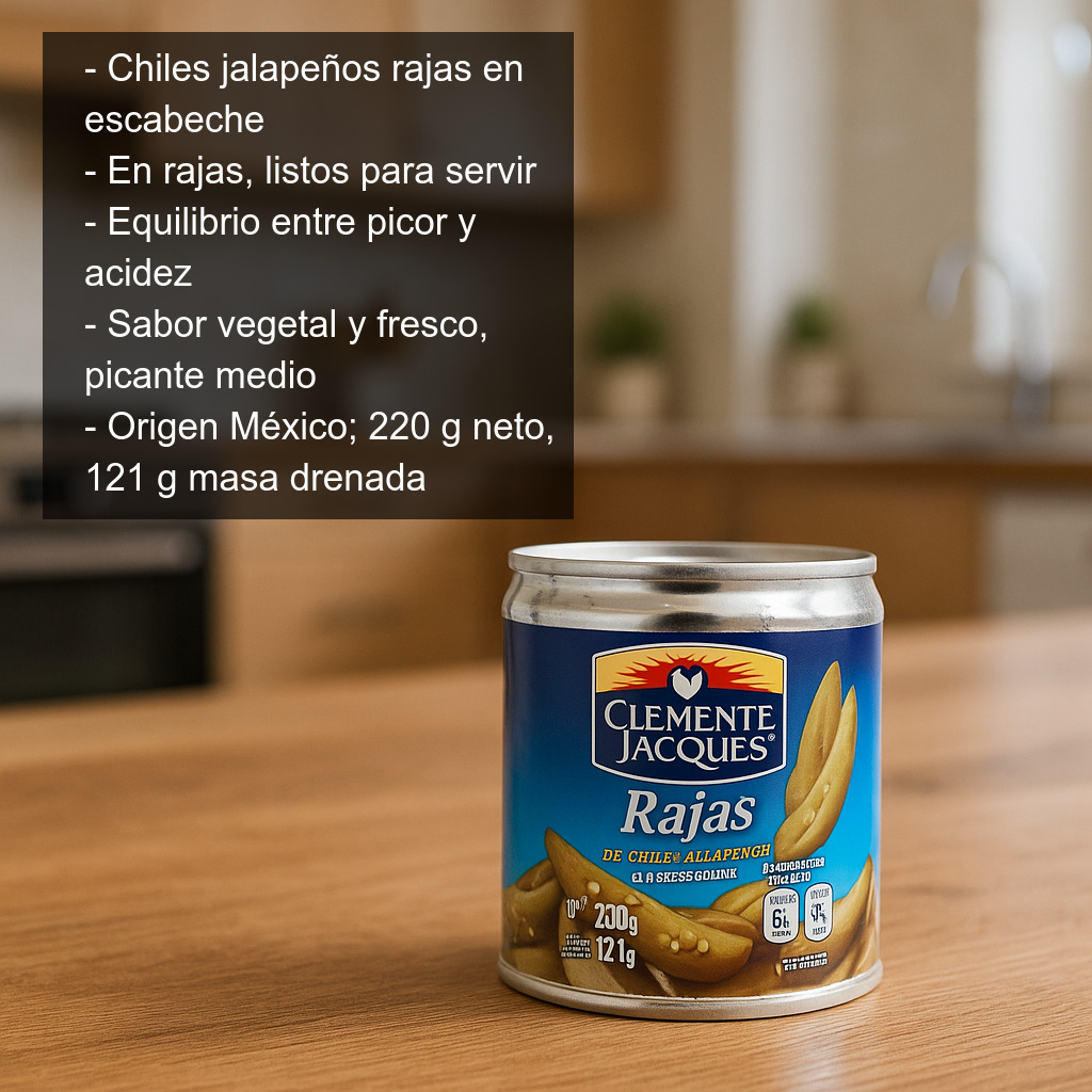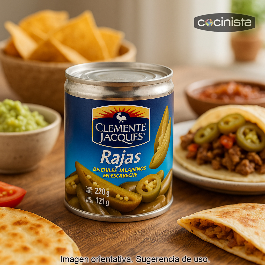 Los chiles jalapeños en rajas en escabeche son un imprescindible de la despensa mexicana: un picante sabroso, aromático y muy versátil, ideal para dar un toque auténtico a tus platos. Este jalapeño, uno de los chiles más conocidos del mundo, es originario de Xalapa (Veracruz, México). Presentado en rajas y conservado en escabeche, aporta un equilibrio delicioso entre picor y acidez, perfecto para realzar sabores sin enmascararlos.