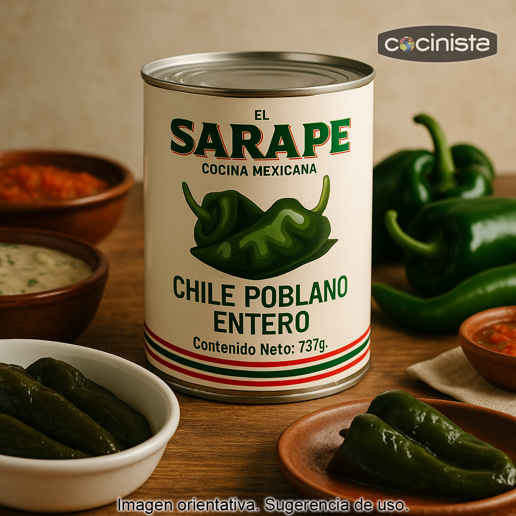 Formato: lata con 737 g de chiles poblanos enteros.