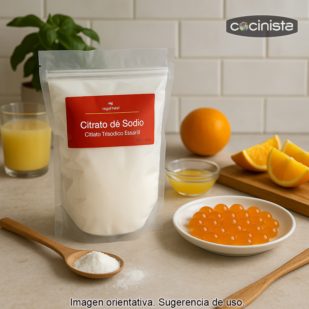 El citrato trisódico (también conocido como citrato de sodio, aditivo alimentario E331) es una sal del ácido cítrico muy utilizada en cocina y en la industria alimentaria como regulador de acidez, potenciador del sabor y conservante. Su principal ventaja es que permite subir el pH de preparaciones ácidas de forma eficaz, con un impacto mínimo en el sabor final.