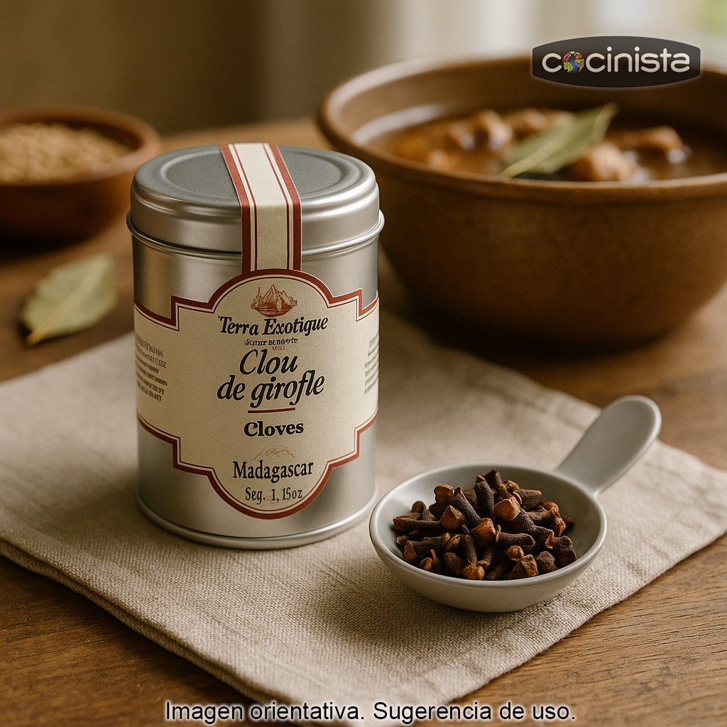 Se trata de clavo entero, ideal para infusionar y aromatizar lentamente guisos, caldos y bebidas, aportando profundidad sin dominar el plato si se usa con moderación. Es un ingrediente imprescindible en muchas cocinas del mundo (india, árabe, europea y latinoamericana) y también en la gastronomía española: por ejemplo, se utiliza en recetas tradicionales como el rabo de toro, escabeches y algunos guisos de carne.