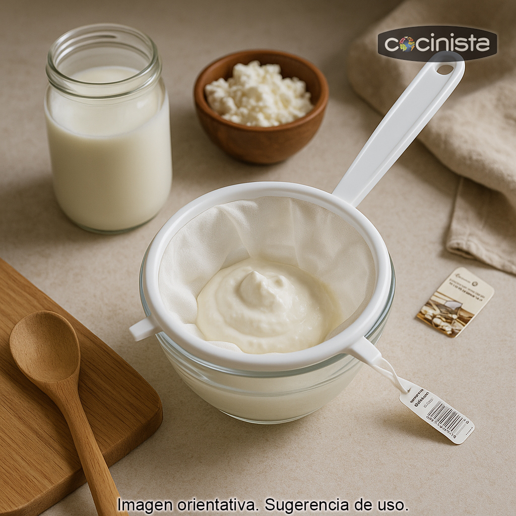Un accesorio sencillo y eficaz para quienes disfrutan preparando quesos caseros, yogures, caldos y recetas saludables con un acabado más fino.