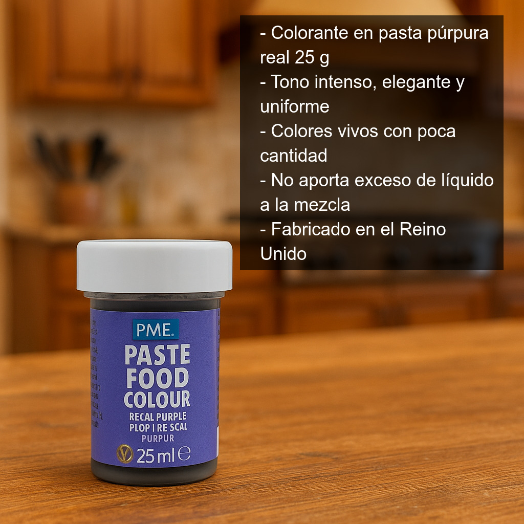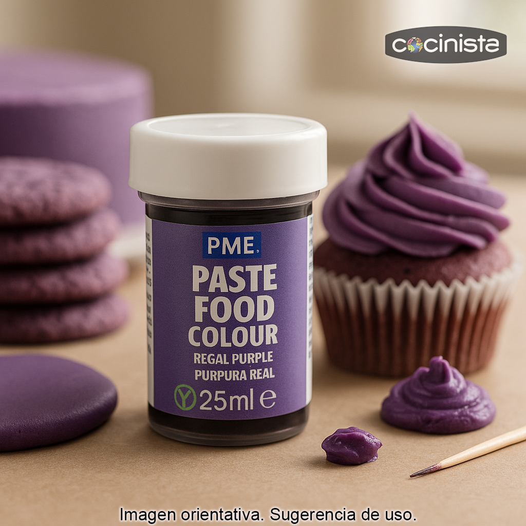 Colorante alimentario en pasta color púrpura real (25 g), ideal para dar un tono intenso, elegante y uniforme a tus elaboraciones de repostería creativa. Su formato en pasta permite conseguir colores más vivos y concentrados con muy poca cantidad, sin aportar exceso de líquido a la mezcla.