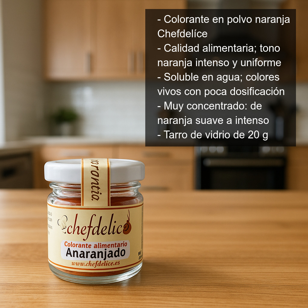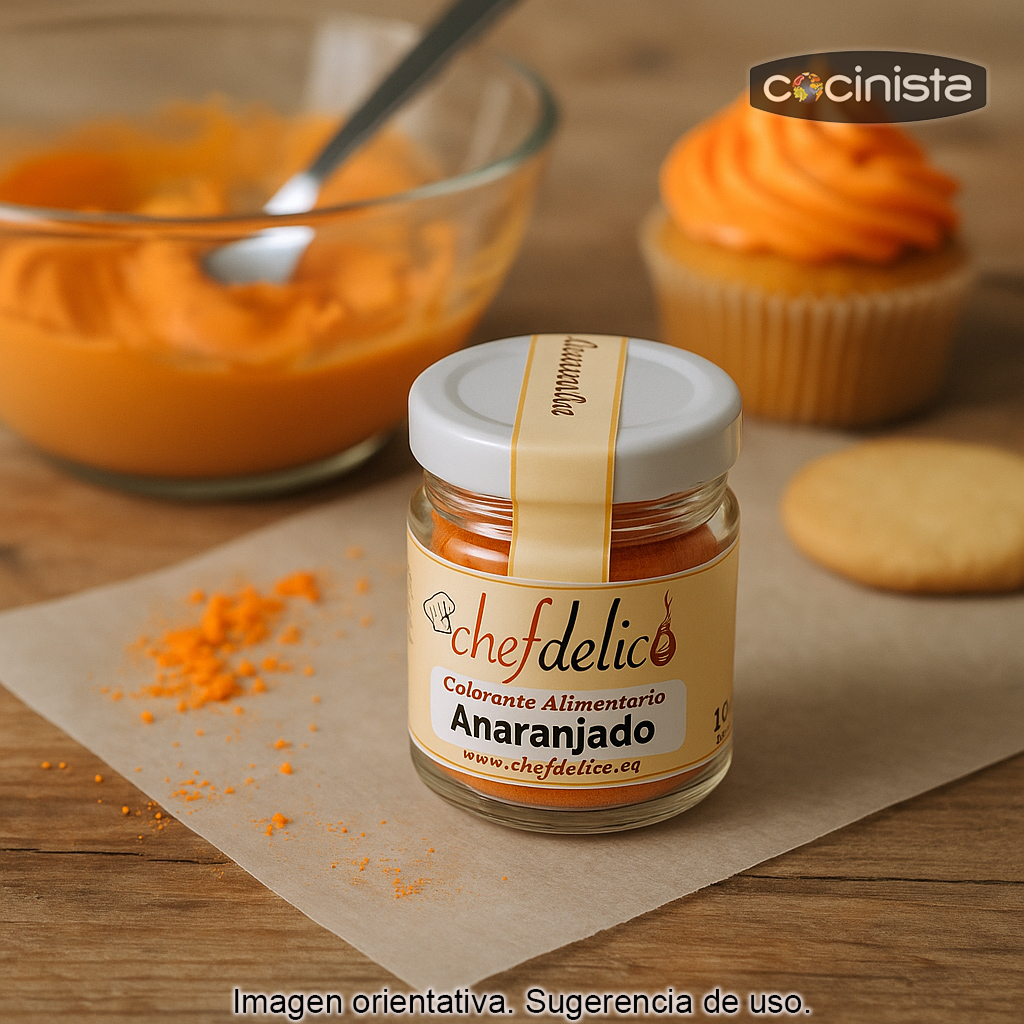 Los colorantes en polvo Chefdelíce son muy concentrados, por lo que con poca cantidad podrás obtener el tono deseado, desde un naranja suave hasta un naranja más intenso.