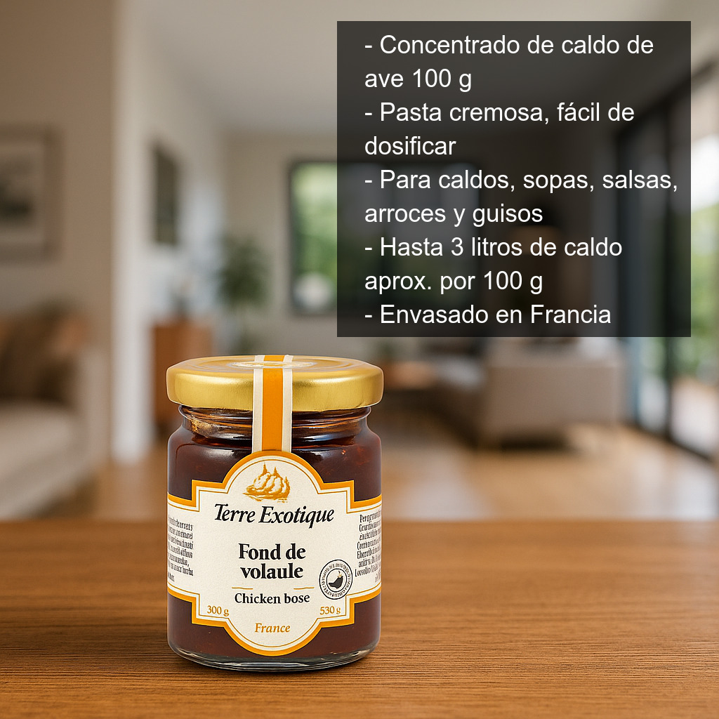 El concentrado de caldo de ave (100 g) es una base culinaria de alta calidad pensada para quienes buscan un sabor profundo y natural en sus elaboraciones. Ideal para la preparación de caldos, sopas, salsas, arroces y guisos, aporta un perfil aromático intenso y equilibrado, con una textura en pasta cremosa fácil de dosificar.