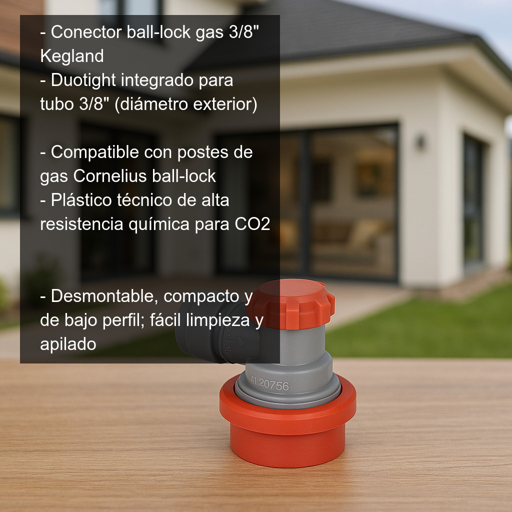 Gracias a su conexión Duotight integrada, permite unir de forma rápida y segura un tubo de 3/8" (diámetro exterior) sin necesidad de abrazaderas, facilitando el montaje de tu equipo de barril, kegerator o keezer y reduciendo el riesgo de fugas en la línea de gas.