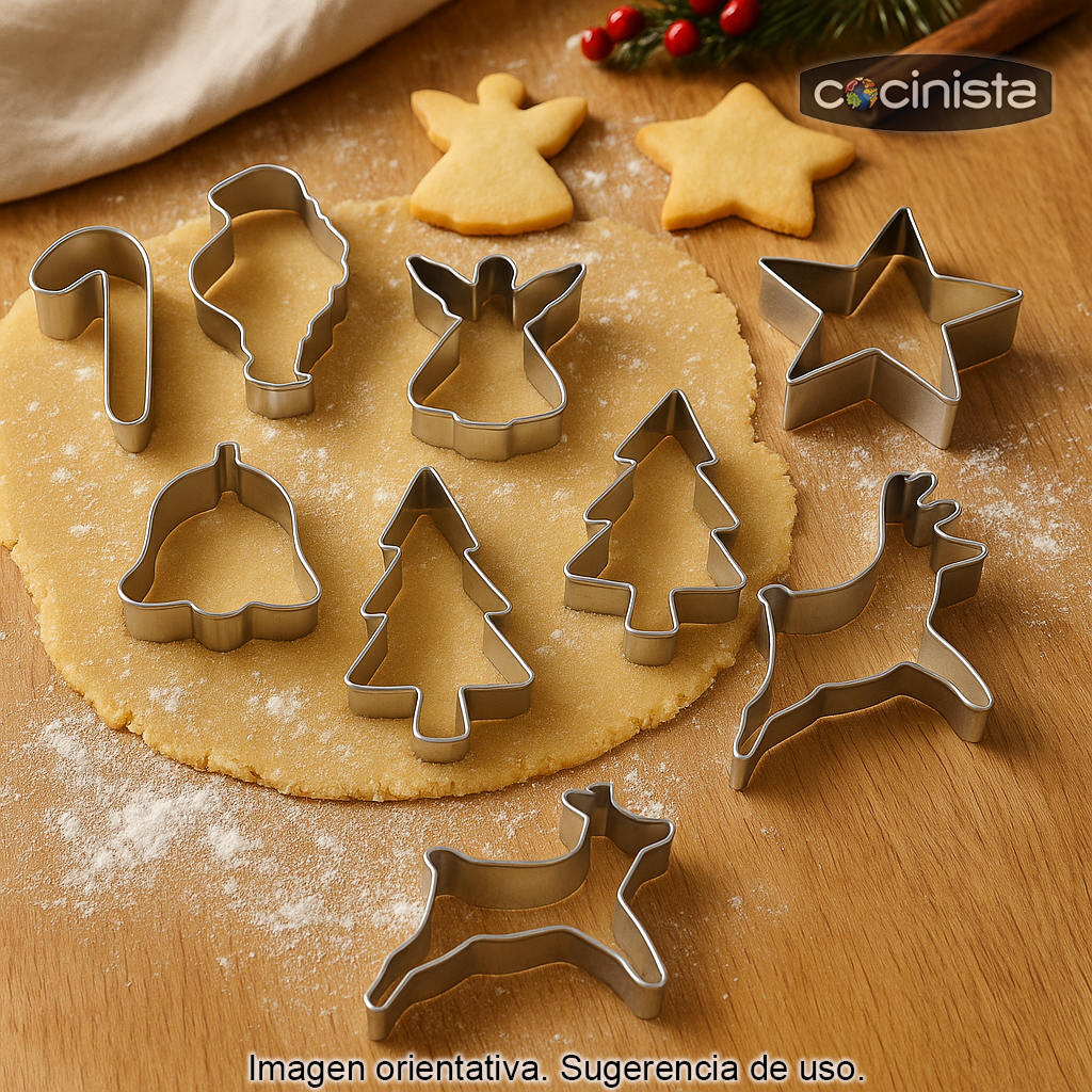 Fabricados en acero estañado, estos cortapastas ofrecen buena rigidez y un corte eficaz sobre la masa. Son una opción clásica para quienes buscan moldes para galletas de Navidad duraderos y con formas tradicionales.