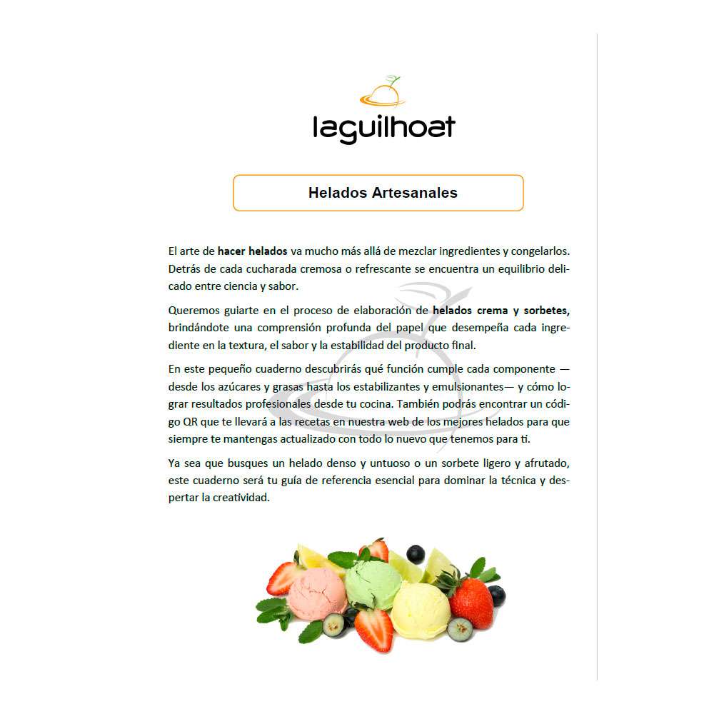 Este folleto te guiará paso a paso en la preparación de bases lácteas para helados cremosos y refrescantes sorbetes de fruta, explicando técnicas esenciales como la emulsión, el batido, la incorporación de aire y el control de cristales de hielo. Además, incluye un código QR con acceso directo a recetas actualizadas para que siempre puedas innovar en tu cocina.
