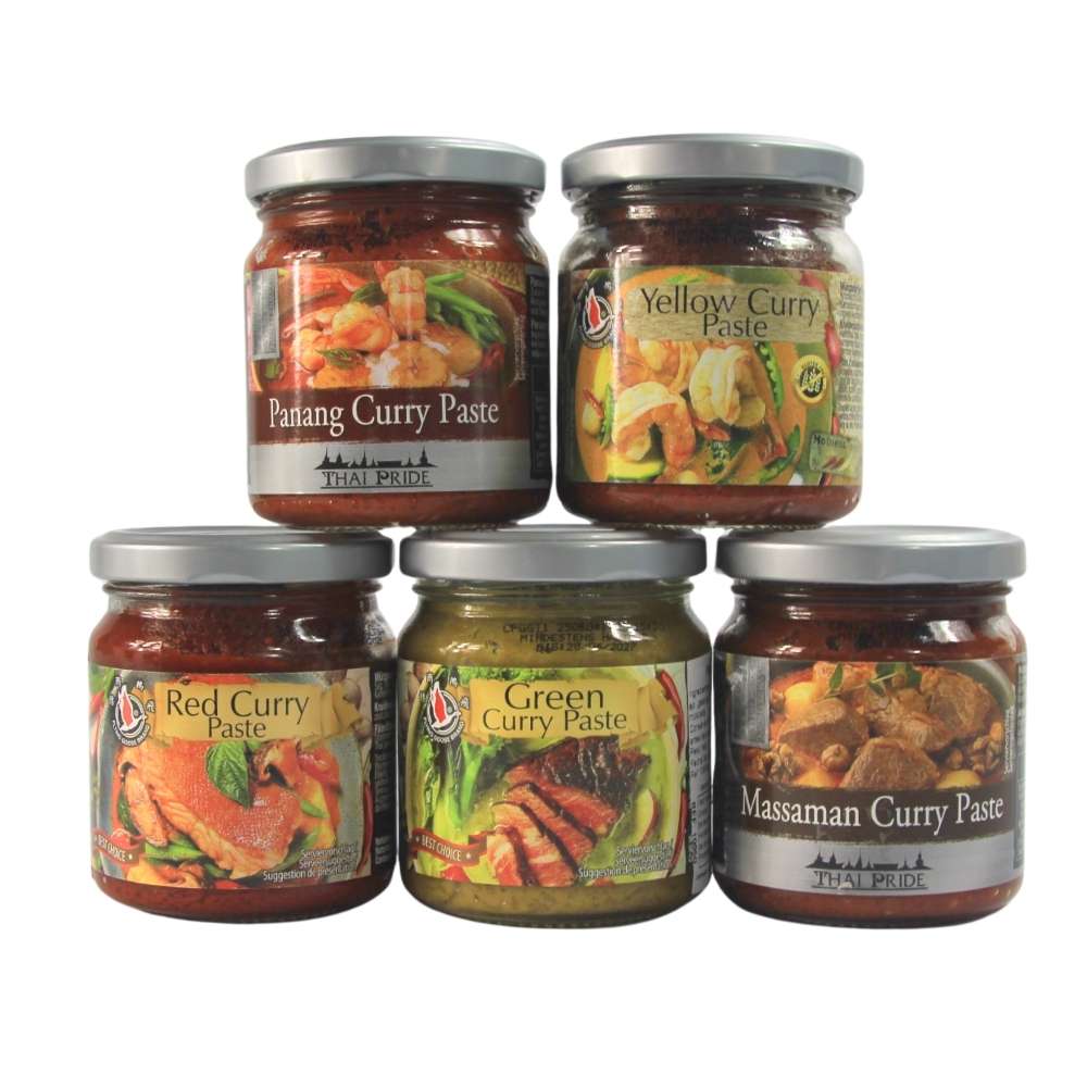 En concreto el pack contiene los siguientes currys en pasta, todos ellos en formato de 195g y que se presentan en frasco de vidrio.