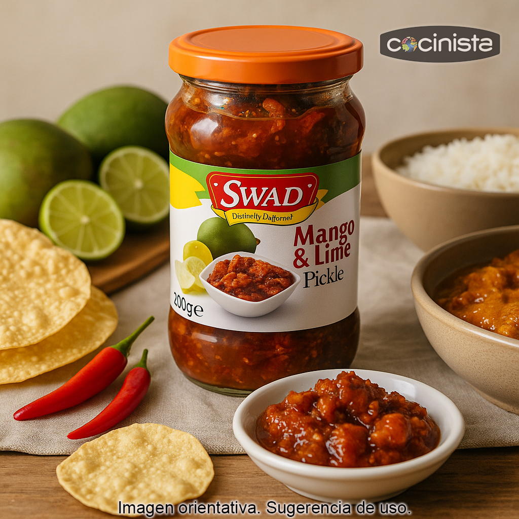 - Como chutney/pickle de acompañamiento: sirve una pequeña cantidad junto a currys, arroces, dal o platos de legumbres.
