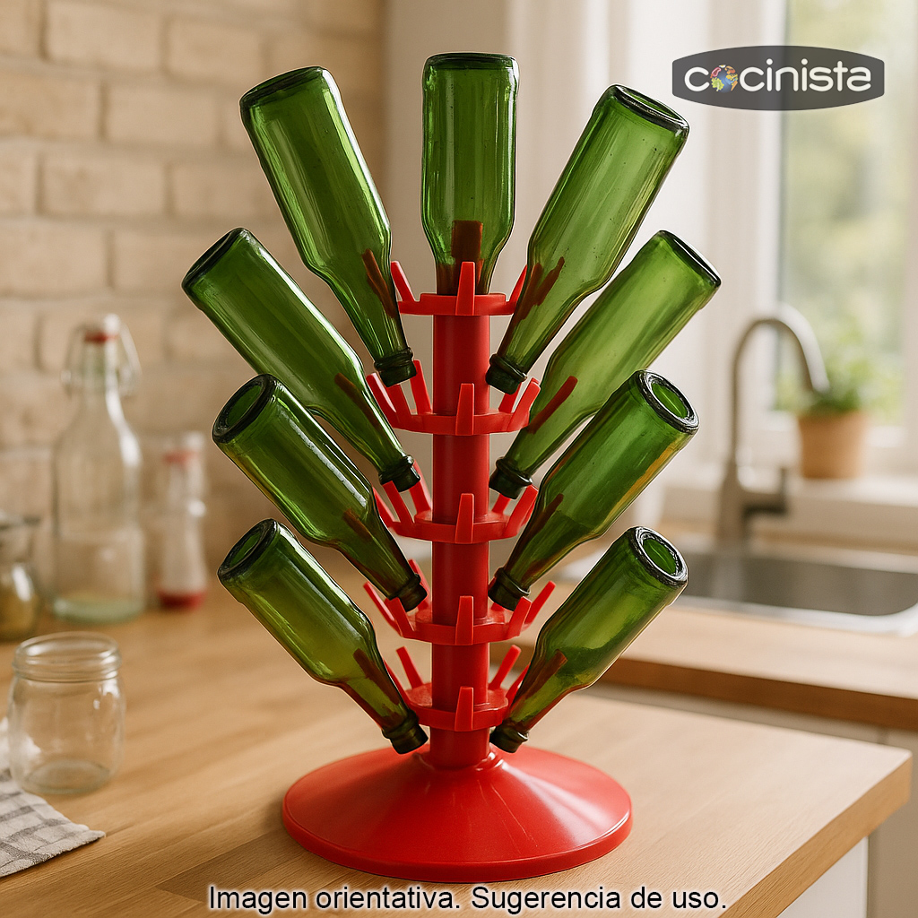 - Diseñado para mantener las botellas separadas y bien ventiladas, facilitando un secado uniforme.