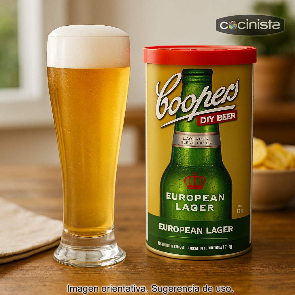La Coopers European Lager es un kit de cerveza pensado para quienes buscan elaborar en casa una lager europea limpia, refrescante y equilibrada, inspirada en las lagers más finas del norte de Europa. Su perfil destaca por un aroma a lúpulo con matices frescos a hierba y un final seco y agradable, ideal para disfrutar bien fría.