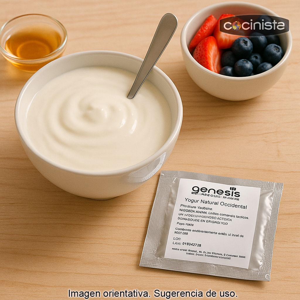 Con estos fermentos para hacer yogur occidental (1 g) podrás elaborar en casa el yogur natural más habitual en España: el estilo que solemos encontrar en el supermercado, de sabor suave, menor acidez y una textura menos densa que la del yogur búlgaro tradicional. Es una opción ideal si buscas un yogur equilibrado, fácil de combinar con fruta, miel, cereales o para usar en recetas.